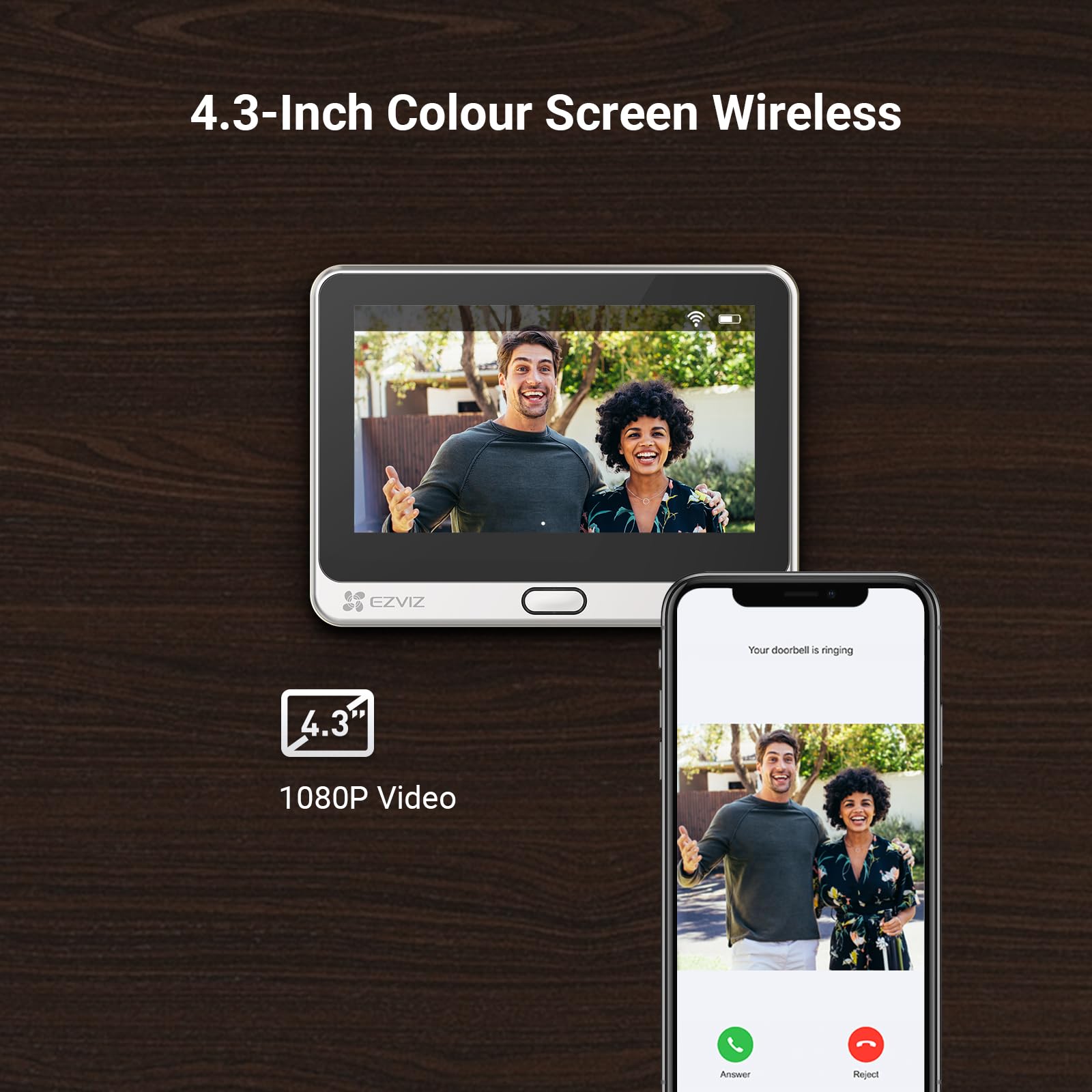 EZVIZ DP2C 1080p Video Door Viewer Peephole Camera with 4.3" Color Screen Display, Built in Chime, Rechargable Battery, APP Viewing, Two Way Audio, PIR Motion Detection, Metal Housing, Cloud/SD