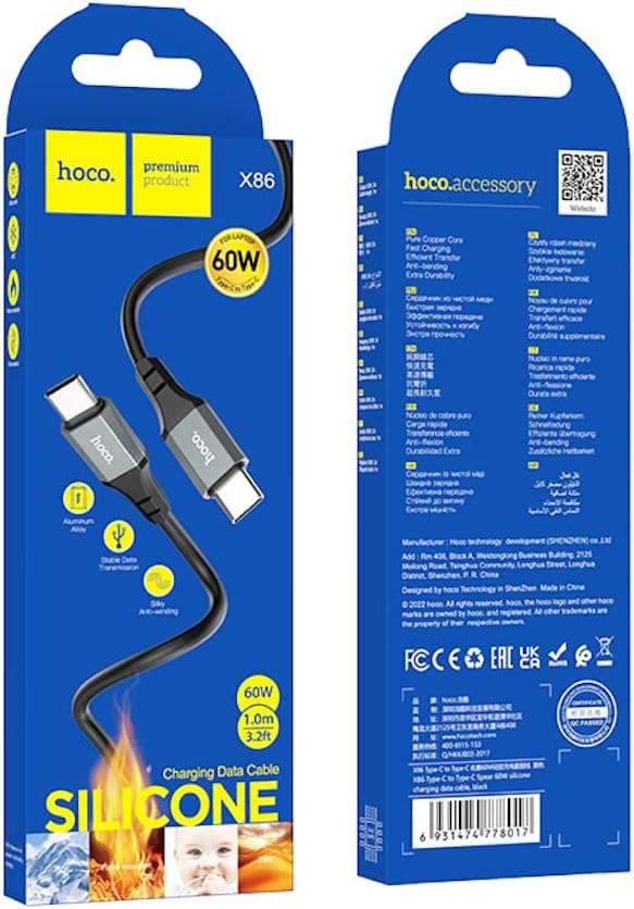 The Hoco X86 Spear cable is made of durable, flexible silicone, designed for fast charging and data transfer.