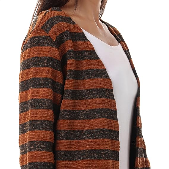 Jamila Women Striped Front Pockets Long Sleeves Open Cotton Cardigan