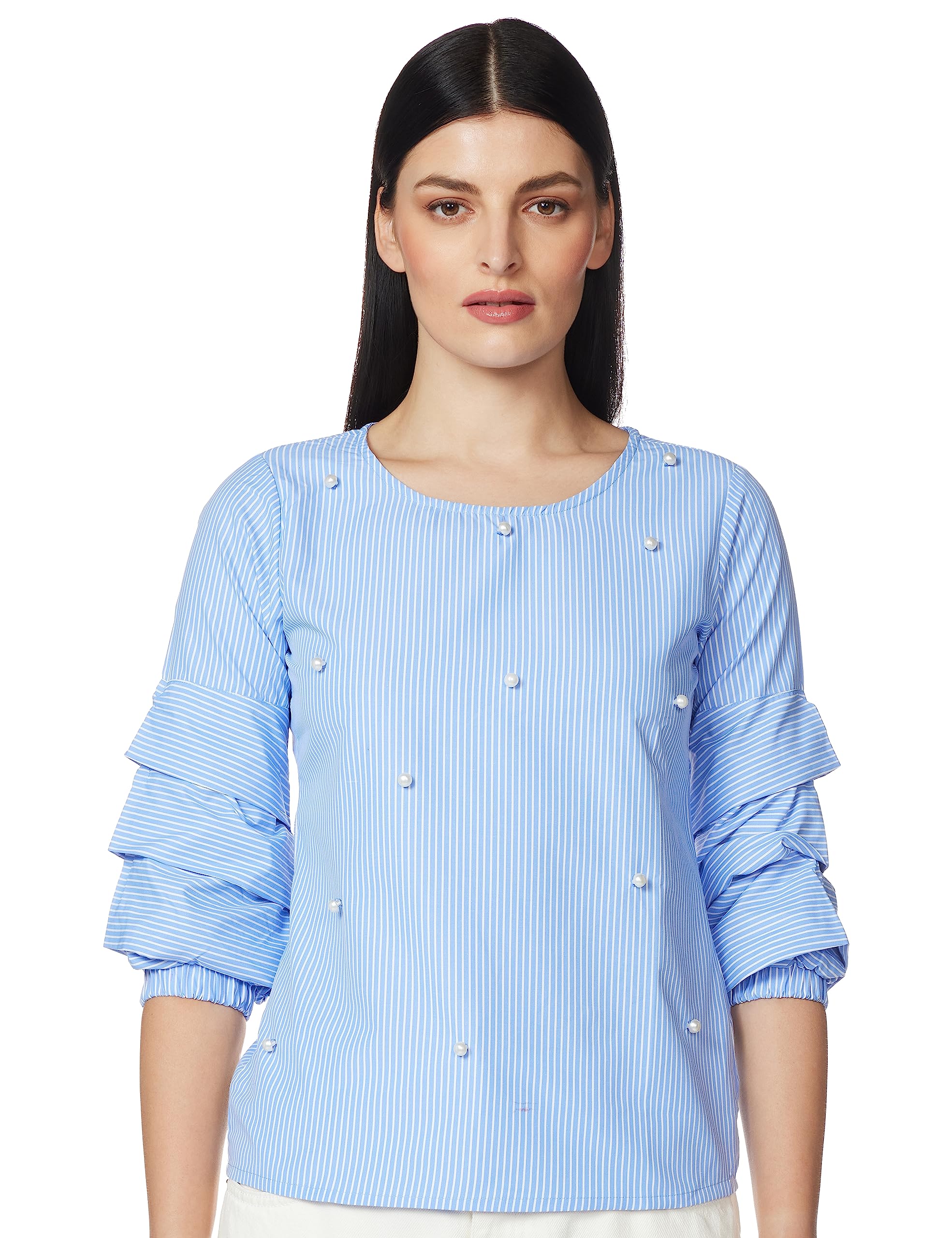 Stay stylish and comfortable with the Krave Women’s Striped Regular Fit Top in baby blue and white. Made from soft, breathable fabric, this top is perfect for casual outings or daily wear, combining a classic striped look with a relaxed fit.