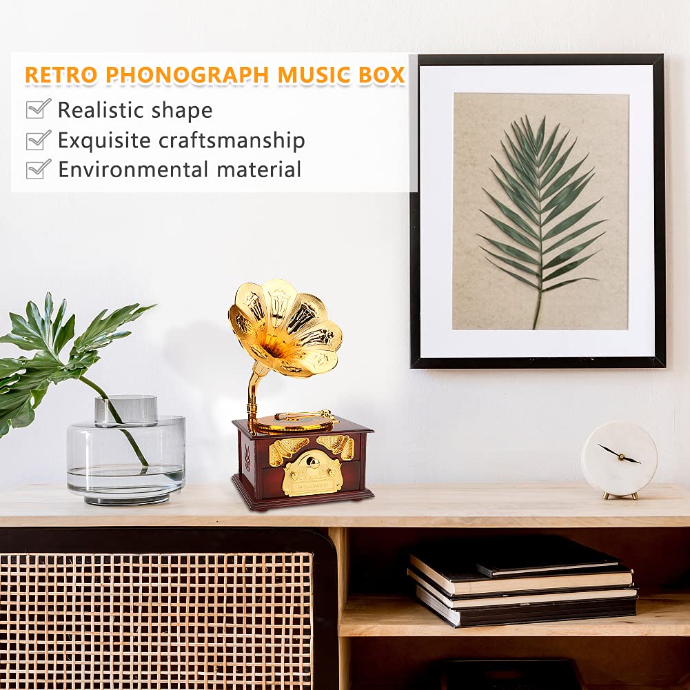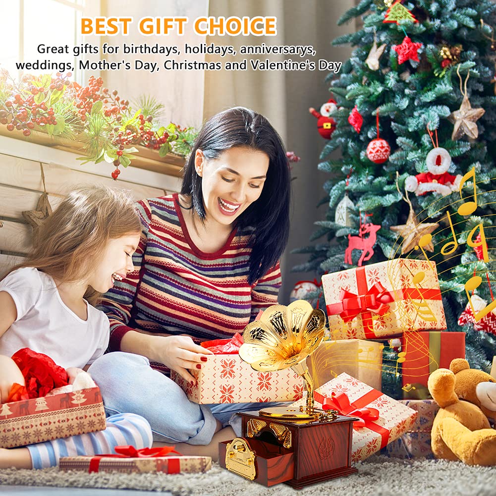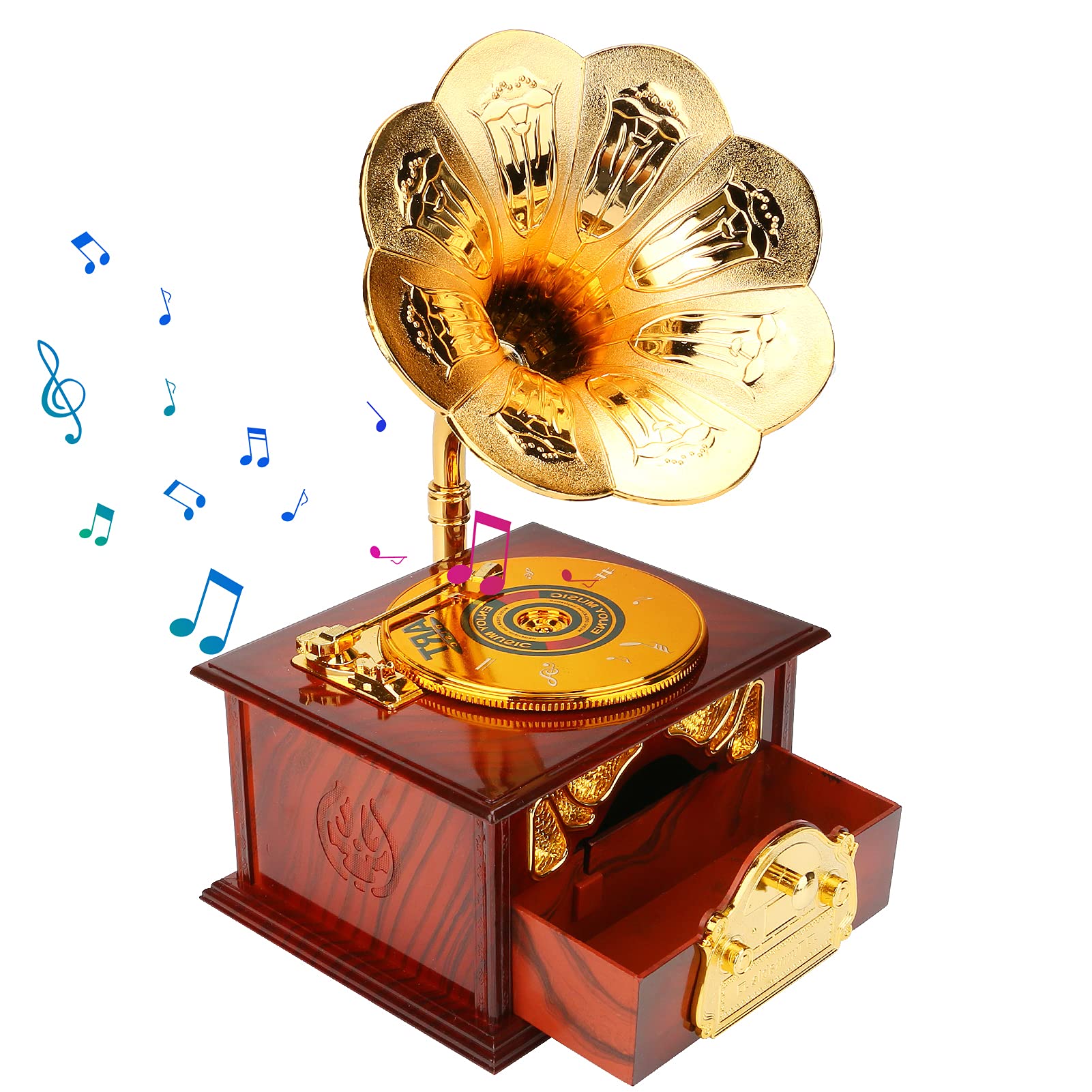 Mystery Vintage Gramophone Music Box, Mechanical Musical Jewelry Box for Girls Women Mom, Retro Table Cafe Bar Home Decor, Birthday Mothers Day Gifts for Mom
