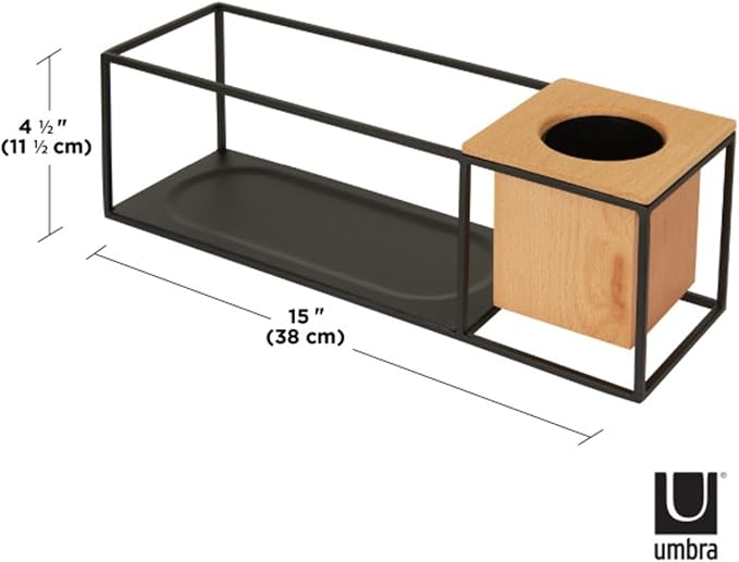 TitleUmbra Cubist Floating Shelf with Built-In Succulent Planter – Modern Wall Décor and Geometric Display Shelf for Books, Candles, Mementos, Photos, Indoor Plants and More! | Small, Black