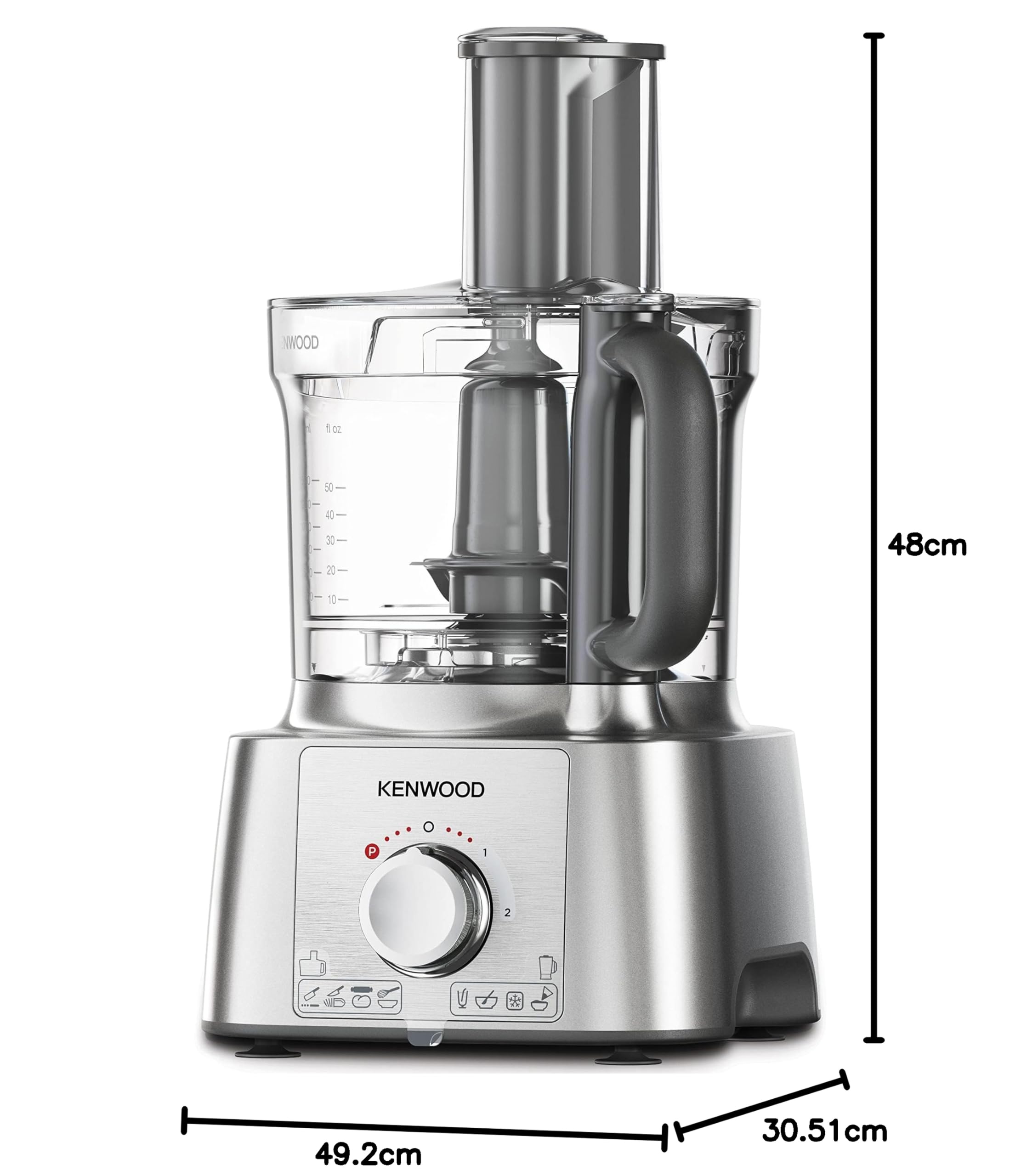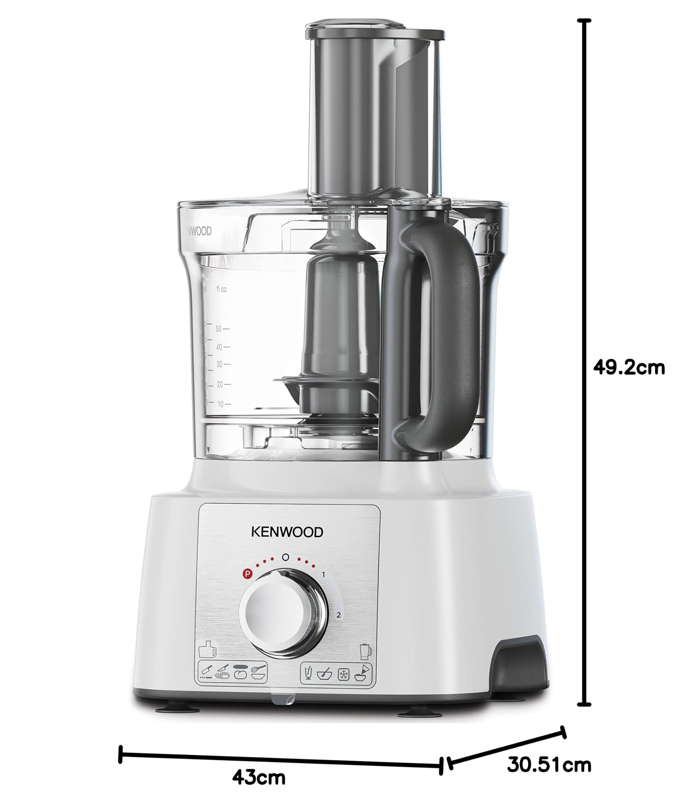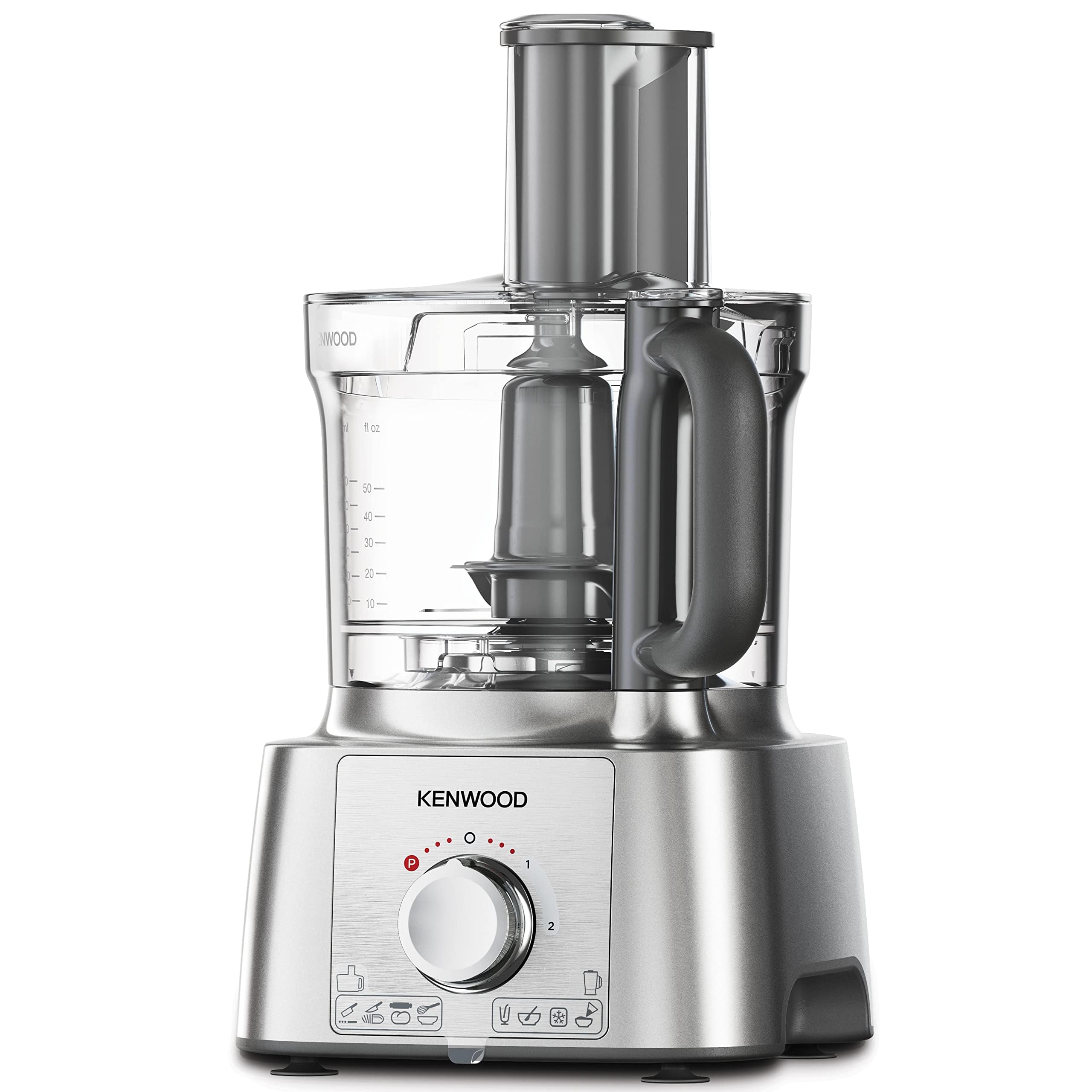 معالج طعام كينوود مالتي برو اكسبرس، وعاء سعة 3.0 لتر مع خدمة سريعة، خلاط سعة 1.2 لتر، خطاف عجين، خفاقة، 3 أقراص تقطيع وبرش، مطحنة متعددة، 1000 واط، FDP65.750WH، فضي.