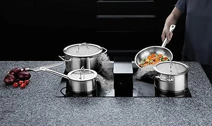 التوافق: مناسب لجميع أنواع المواقد، بما في ذلك الحث، ومتوافق مع أنظمة شفط الهواء السفلية.