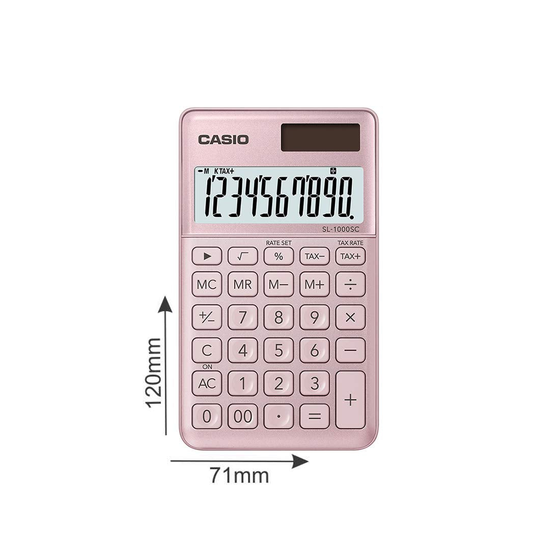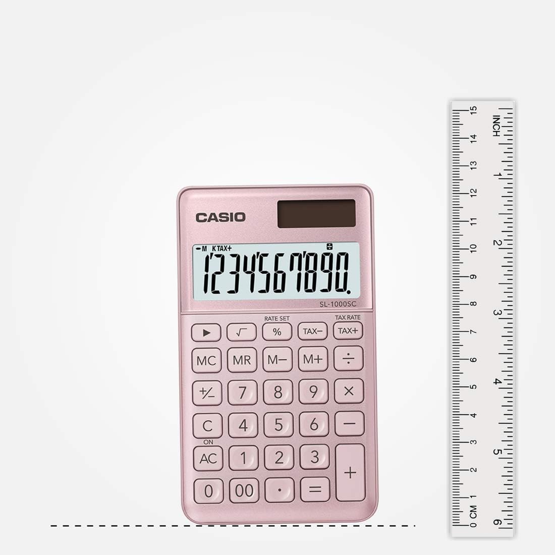 تجمع آلة حاسبة كاسيو SL-1000SC-PK-N-DP الرقمية المحمولة باللون الوردي بين الأداء العملي والتصميم الأنيق، مما يجعلها مثالية للاستخدام في المدرسة أو المكتب أو المنزل. تتميز بحجم صغير وخفة وزنها مع شاشة كبيرة تعرض حتى 10 أرقام بوضوح وسهولة