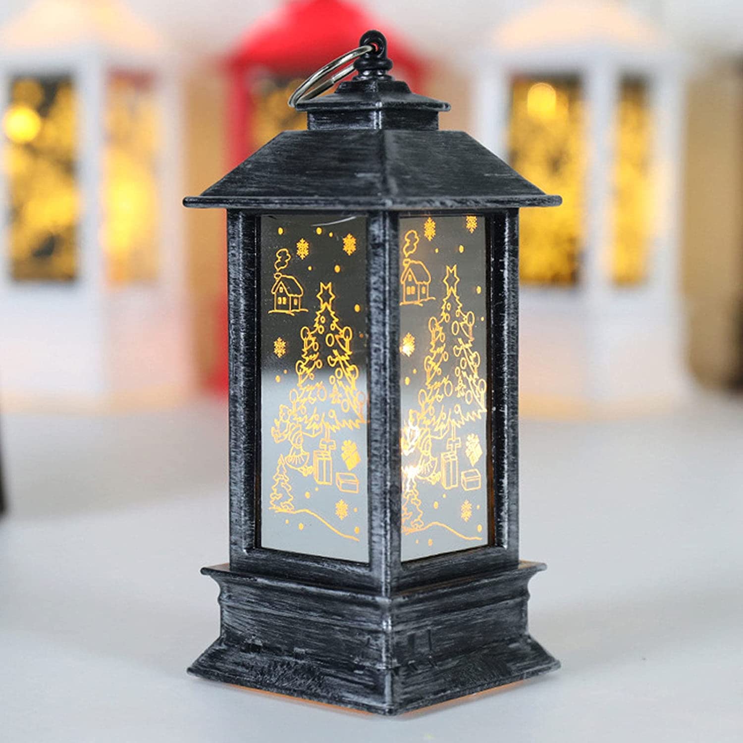 فانوس شمعدان كريسماس – مصباح ليلي مزين بسانتا وكل رجل الثلج