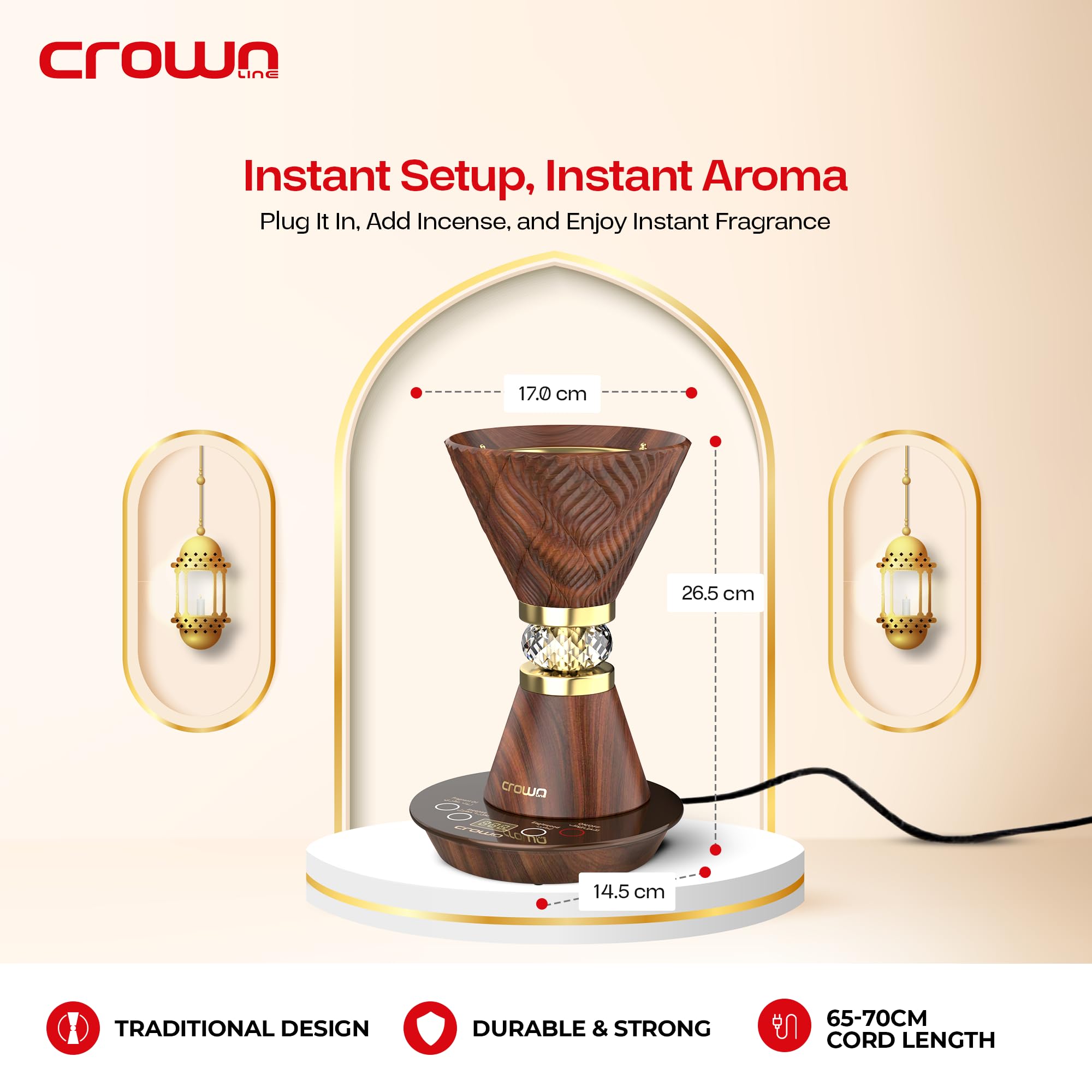 بخر البخور الكهربائي من كراون لاين بين الأناقة والتقنية الحديثة ليمنحك تجربة عطرية فاخرة. يتميز بنظام تحكم ستريكس بخمس نقاط مع إمكانية ضبط درجة الحرارة بدقة، مما يسمح بإطلاق روائح البخور والعطور والزيوت العطرية