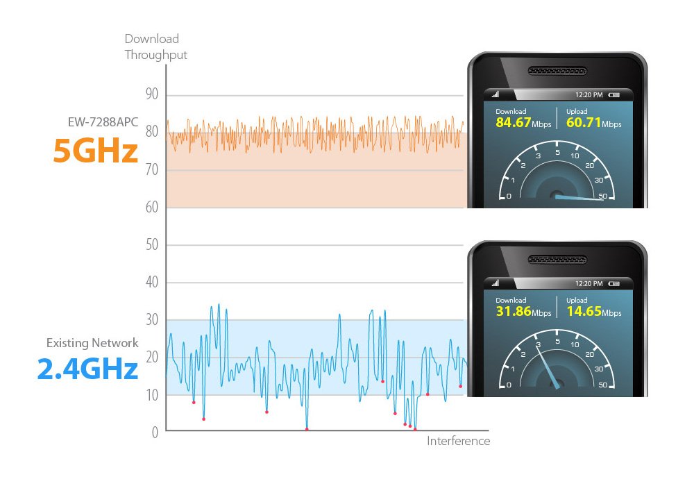 يدعم الشبكات اللاسلكية ثنائية النطاق لاتصال أسرع وأكثر استقرارًا