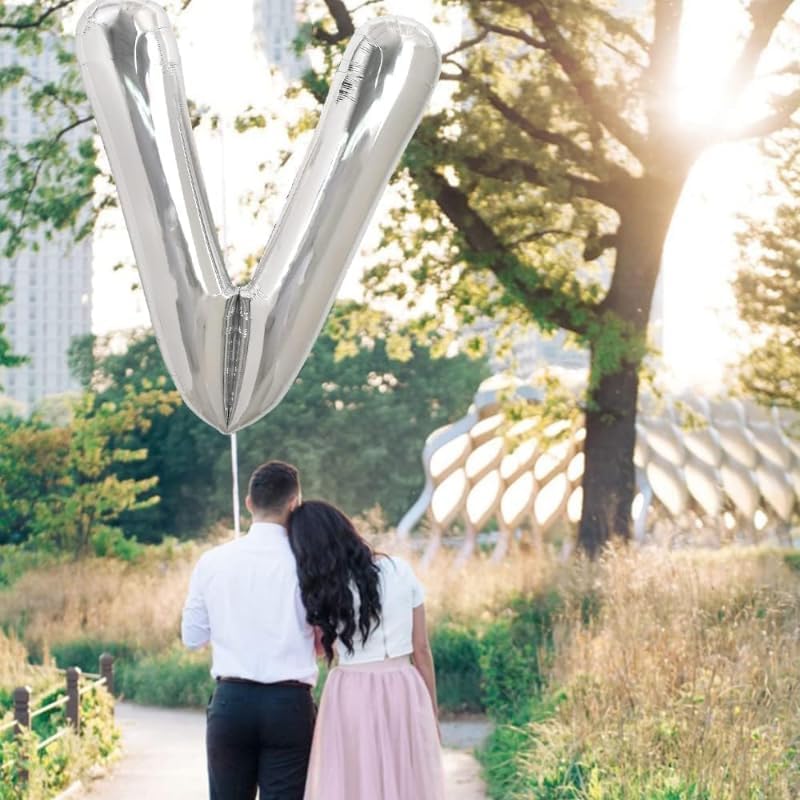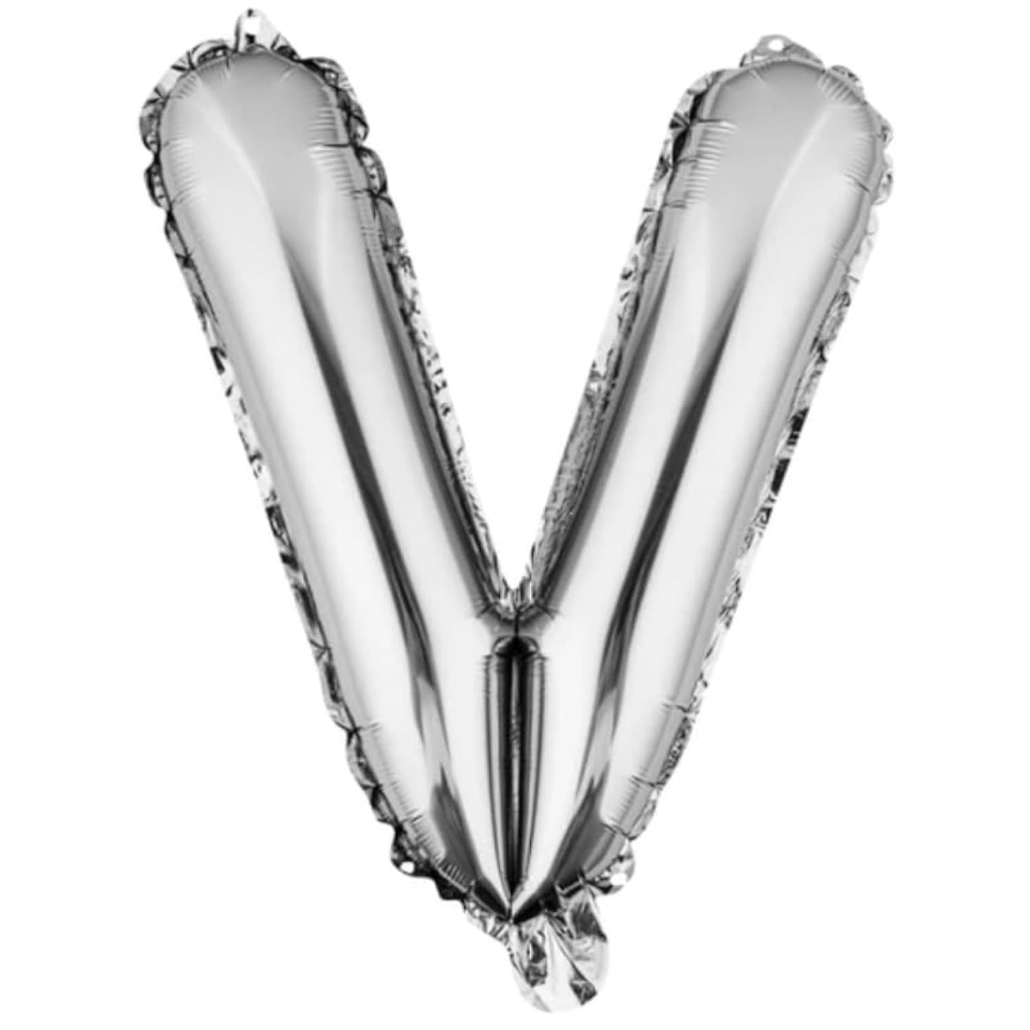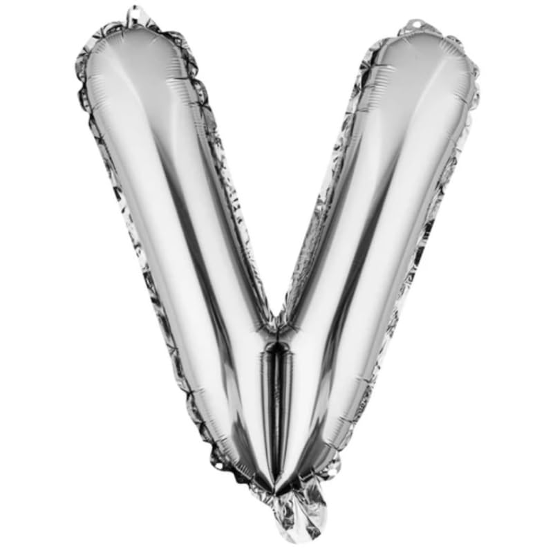بالون لامع كبير من ورق الألومنيوم على شكل حرف V يمكن ملؤه بالهواء أو الهيليوم من مواد عالية الجودة مصنوعة خصيصًا لتزيين حفلات أعياد الميلاد 40.64 سم - فضي