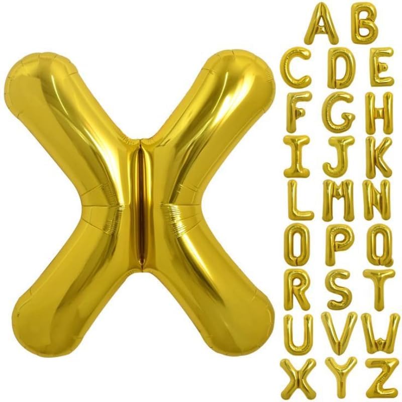 أضيفي لمسة فخامة وتألق لحفلتك مع بلونة حرف "X" الذهبية بحجم كبير (32 إنش)! مصنوعة من خامات فويل عالية الجودة، يمكن تعبئتها بالهواء أو الهيليوم، مثالية لتزيين أعياد الميلاد، الخطوبات، التخرج، أو أي مناسبة خاصة.