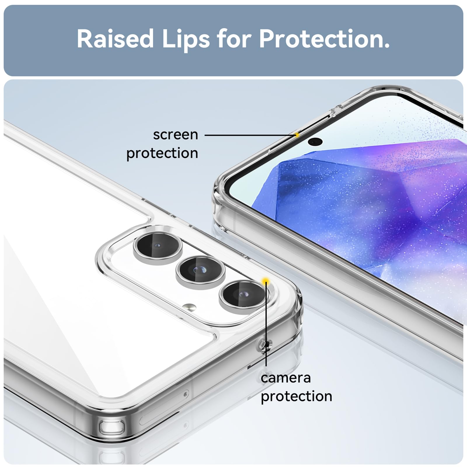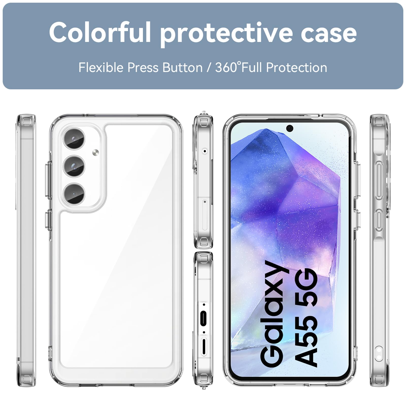 جراب شفاف كريستالي من هايدوي متوافق مع سامسونج جالاكسي A55 شبكة الجيل الخامس 5G للجنسين مضاد للاصفرار والخدش بولي كربونات هجين للصدمات وسيليكون يوريثين مقاوم للحرارة