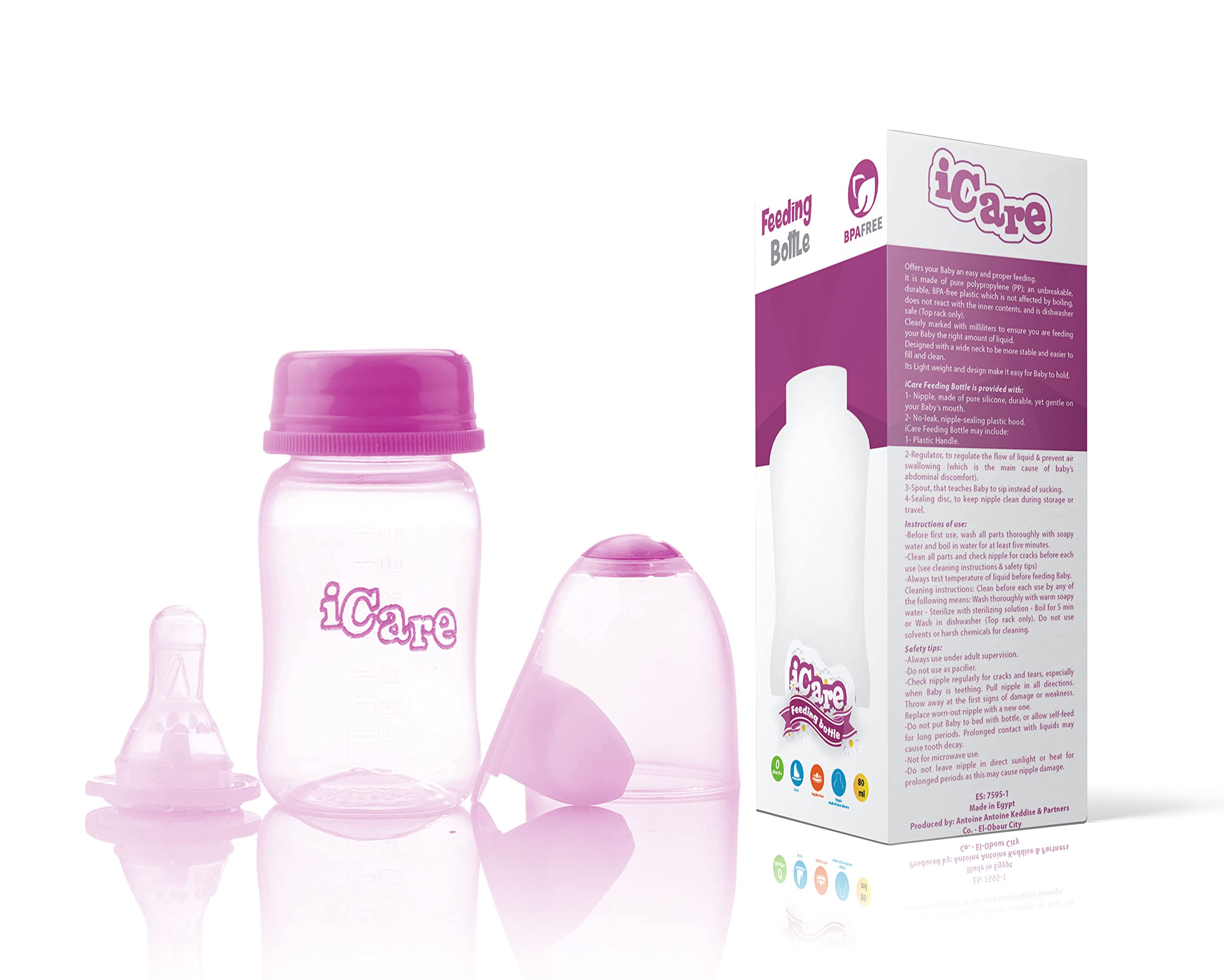 رضّاعة الأطفال آي كير (80 مل) مصممة خصيصًا لتناسب حديثي الولادة والرضّع، وتوفر تجربة رضاعة آمنة وصحية. مصنوعة من مواد خالية من مادة الـ BPA لضمان سلامة الطفل