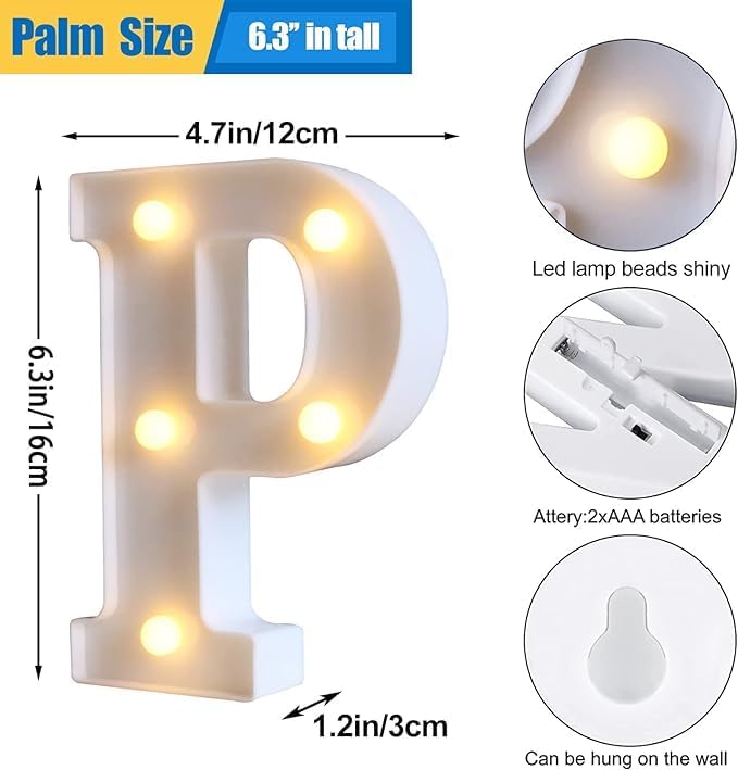 أضيئي منزلكِ أو حفلتكِ بلمسة أنيقة مع مصباح الحرف المضيء LED شكل حرف “P”.