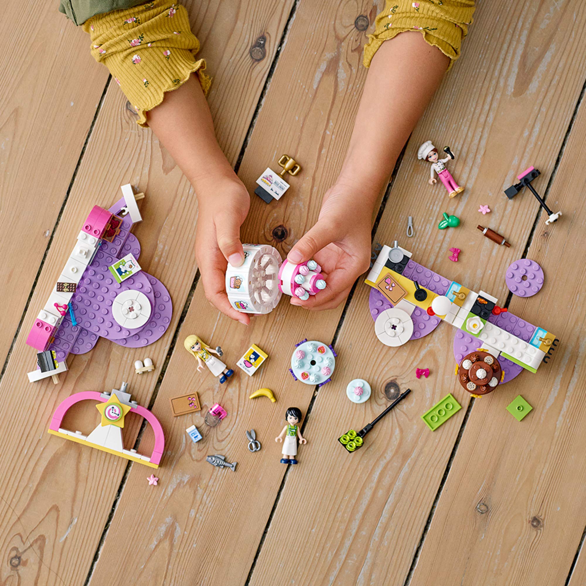 مجموعة ليغو فريندز مسابقة الخَبز (41393)! تحتوي هذه المجموعة الممتعة على 361 قطعة وتضم ثلاث شخصيات مصغرة هي ستيفاني، ديفيد، والحَكمة كلير، إلى جانب أدوات خبز وقوالب كعك وإكسسوارات مطبخ مميزة