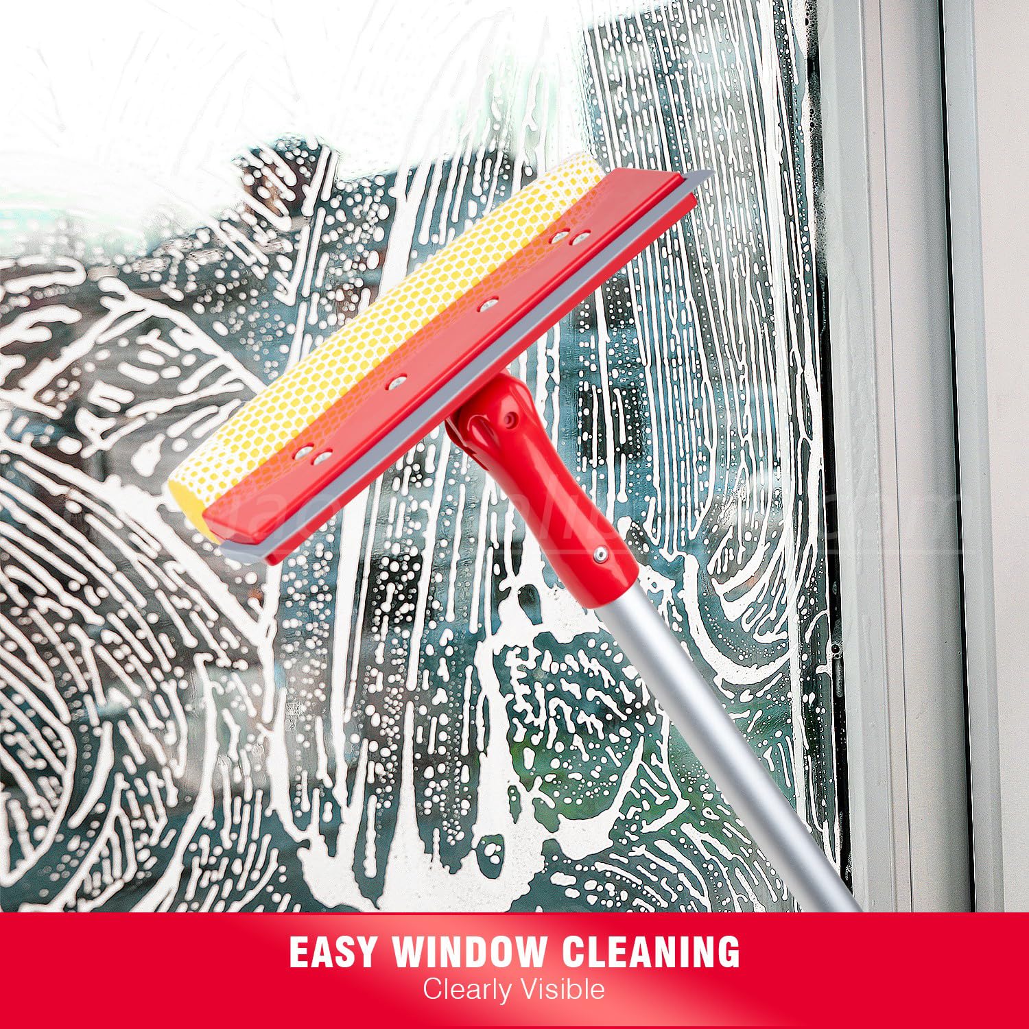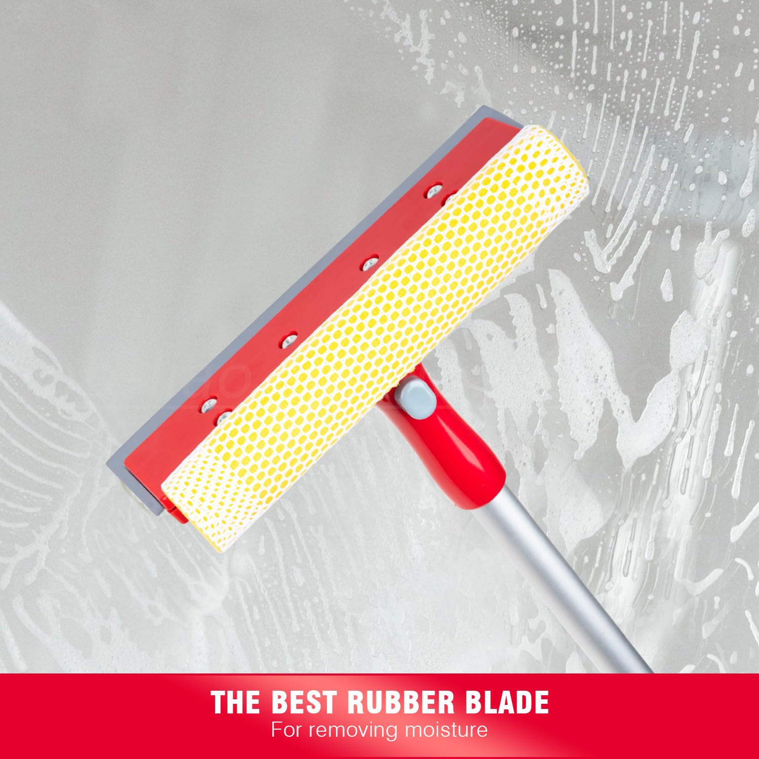 أداة تنظيف نوافذ بمقبض من الألومنيوم ورأس تنظيف مقاس 20 سم من لياو، لون أحمر/ فضي