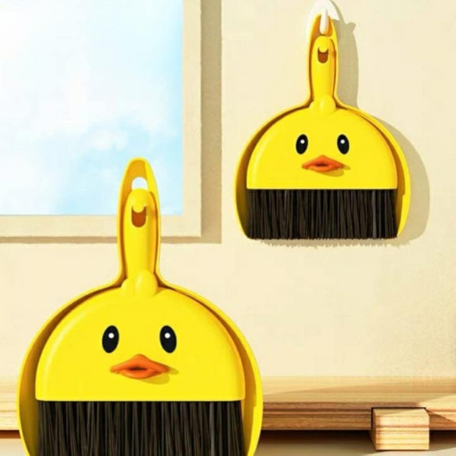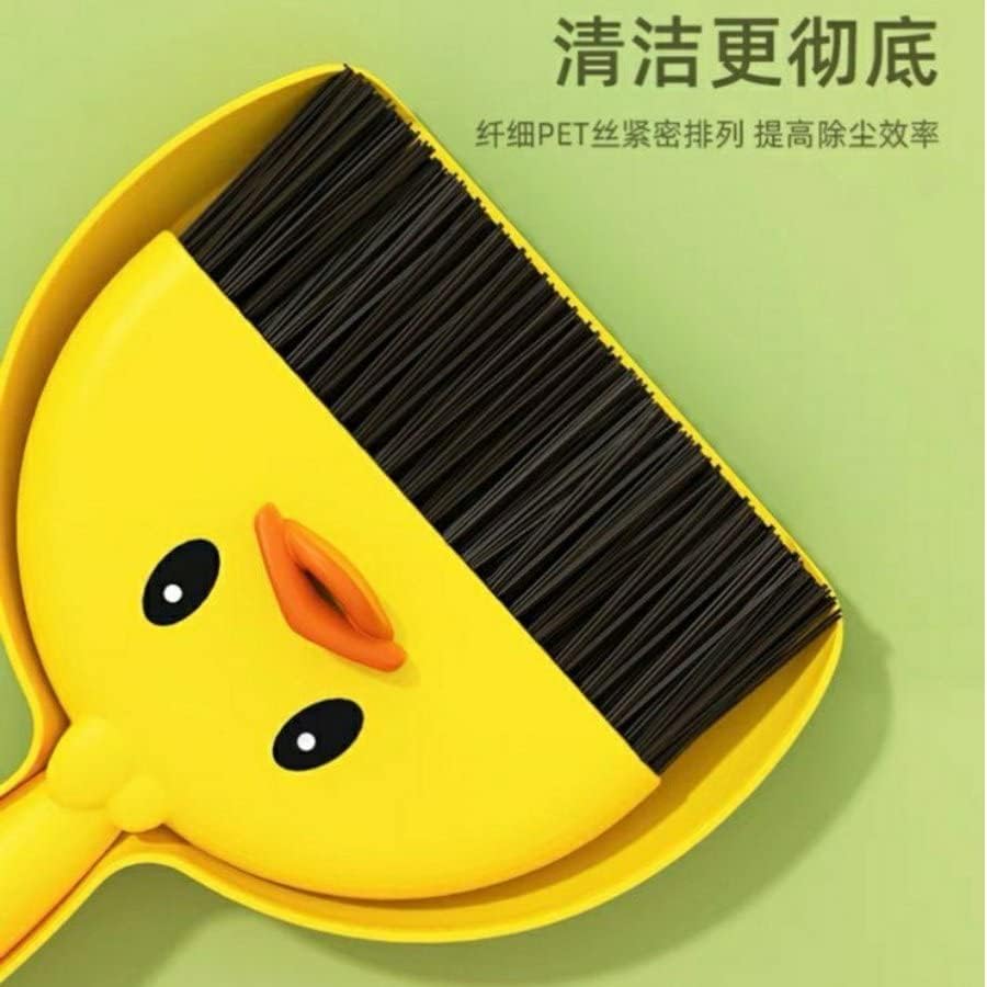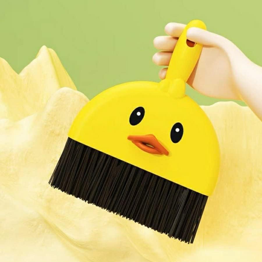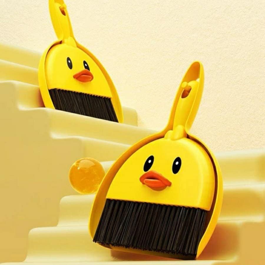 طقم مكنسة وجاروف صغير متعدد الاستخدامات – تصميم بطة صفراء لطيفة يجمع بين الشكل الجميل والوظيفة العملية لتنظيف الأسطح الصغيرة مثل الطاولات والمكاتب.
