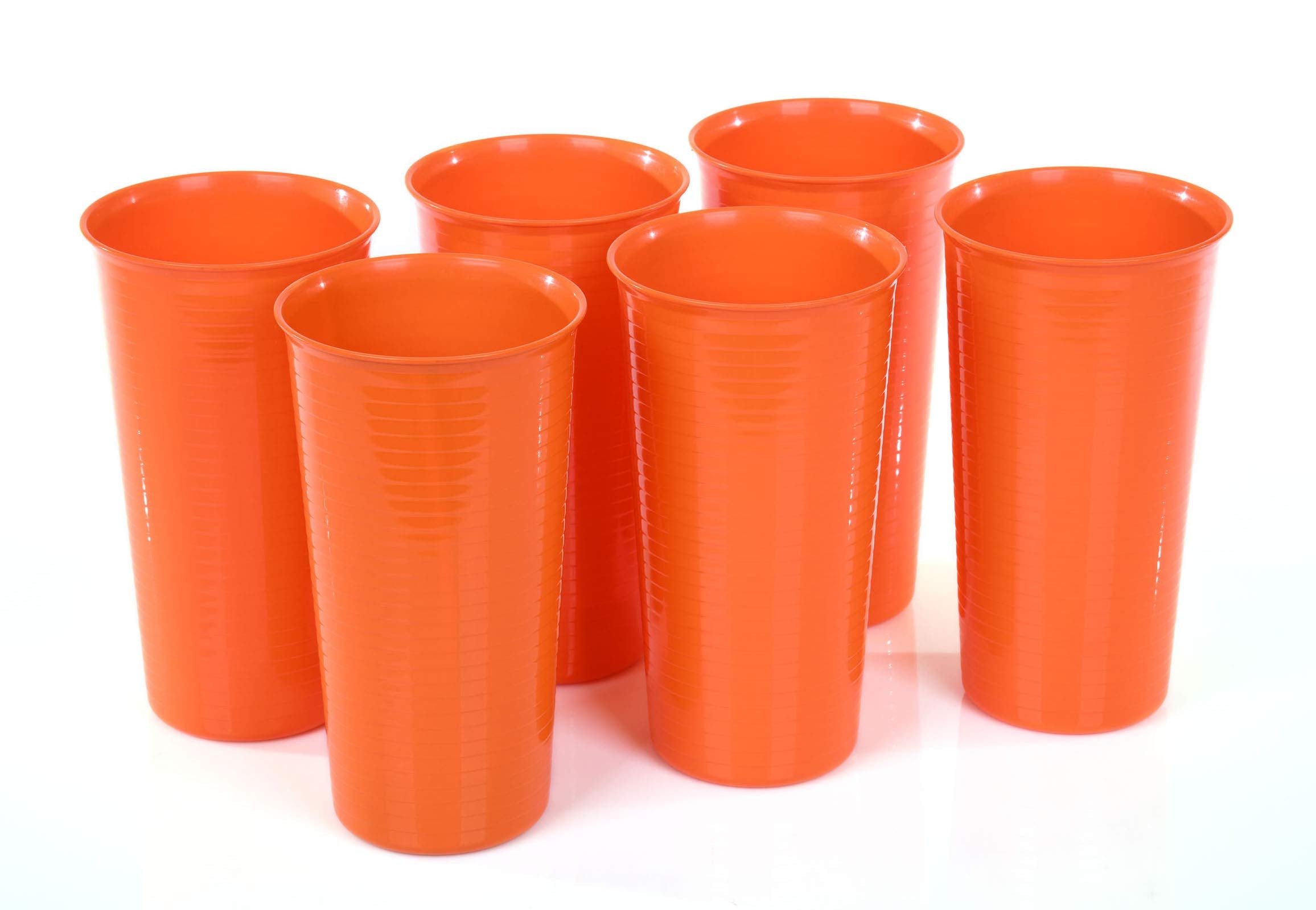 عبوة تحتوي على 6 أكواب بلاستيكية قابلة لإعادة الاستخدام باللون البرتقالي