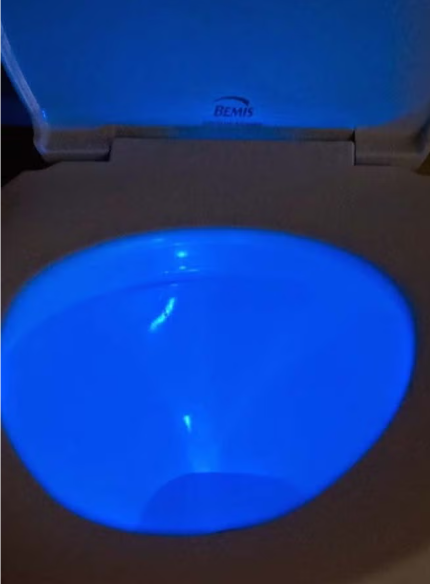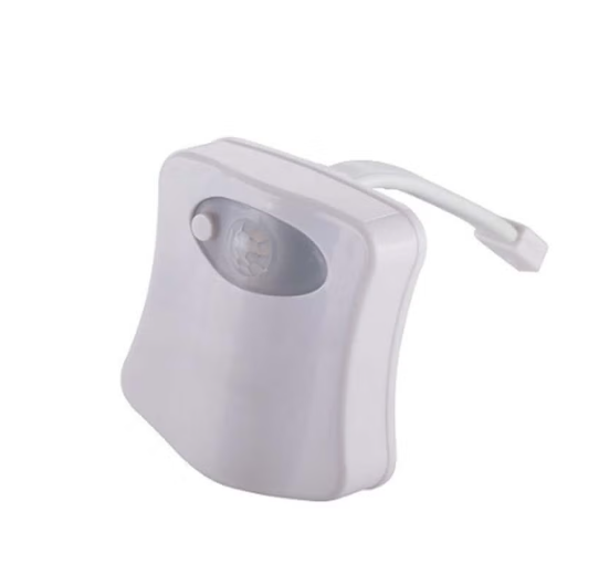مصباح ليلي LED للمرحاض يعمل بالحركة باللون الأبيض، الأبعاد 9×10 سم. يضيء تلقائيًا عند اكتشاف الحركة داخل المرحاض، ليقدم تجربة مريحة وآمنة أثناء الليل دون الحاجة لتشغيل أضواء الحمام الساطعة.