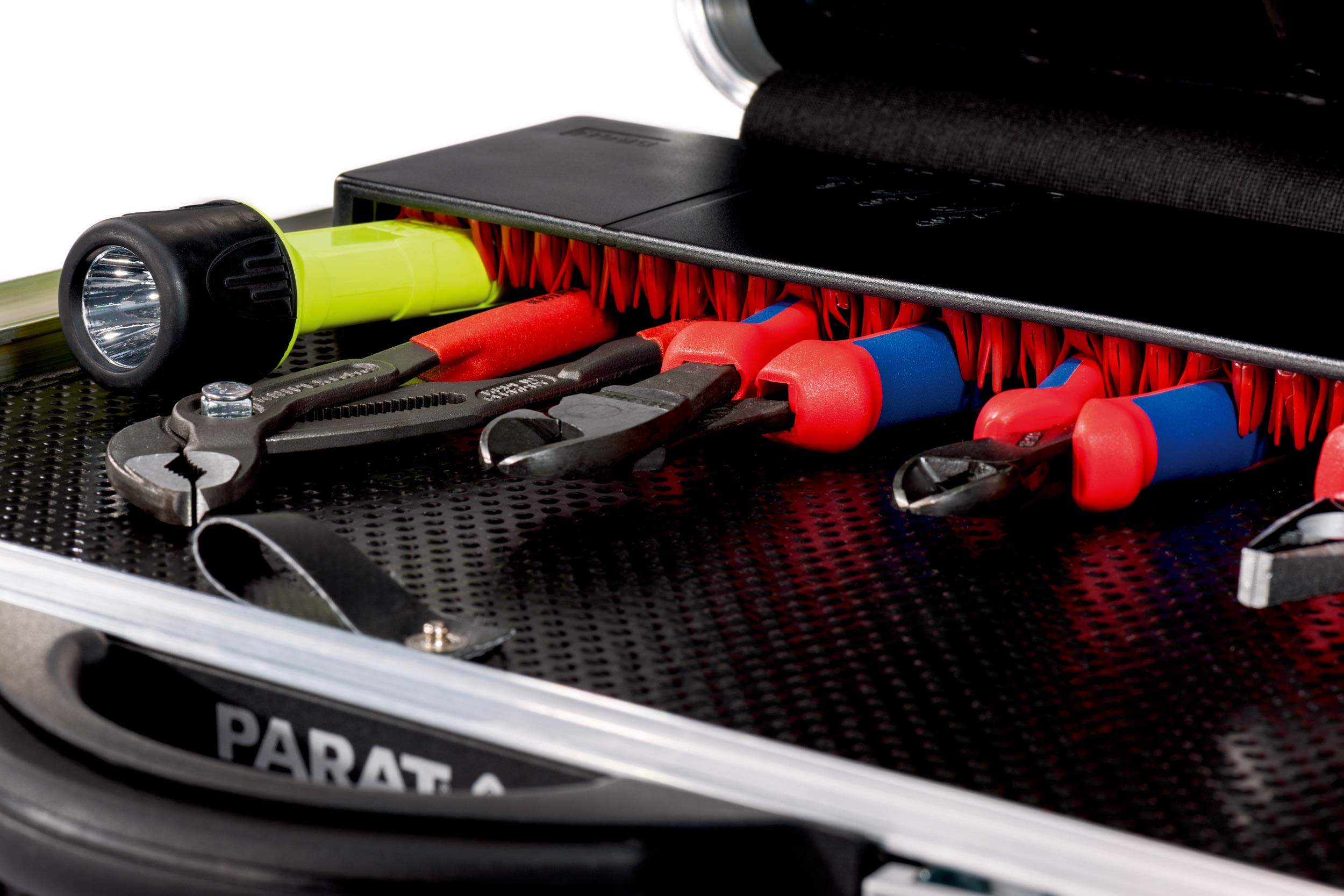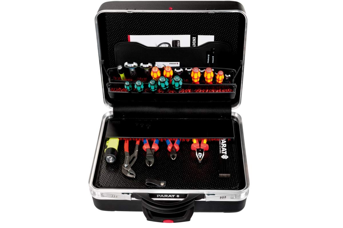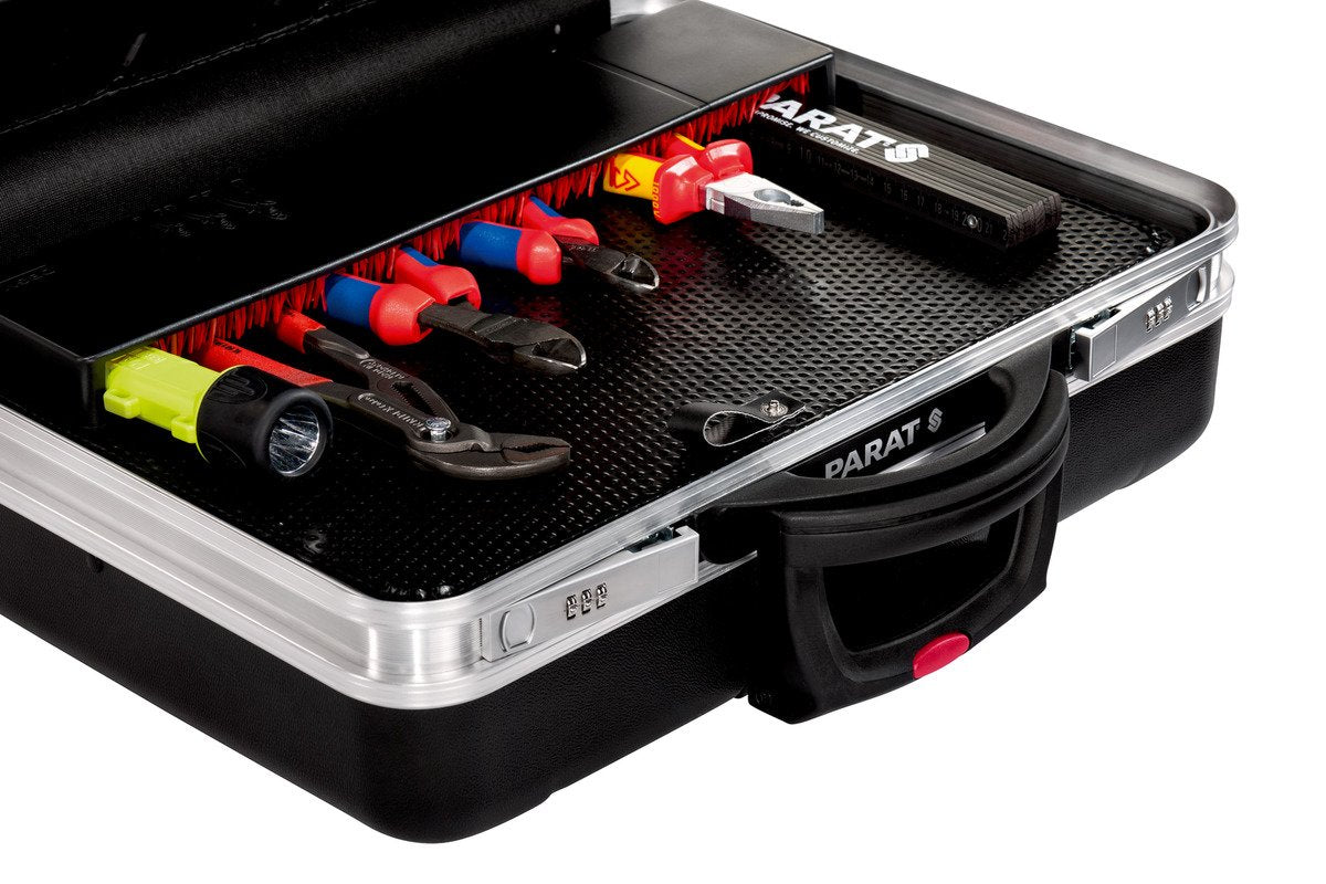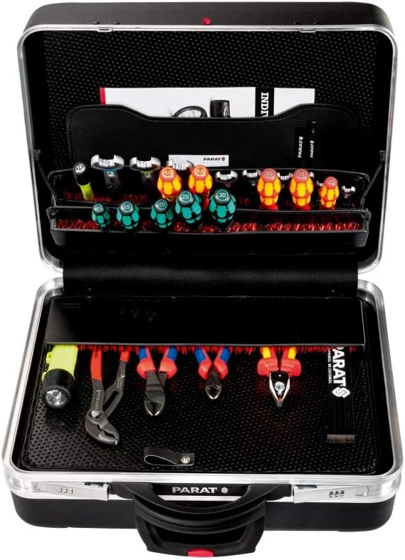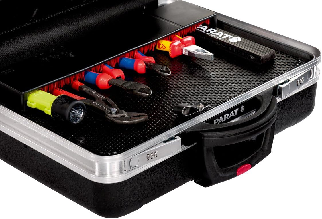 حقيبة الأدوات المتنقلة بارات Parat(موديل 589550171) هي حقيبة عالية الجودة مصممة للمحترفين الذين يبحثون عن المتانة والتنظيم وسهولة النقل. تتميز بغلاف خارجي صلب ومتین باللون الأسود الأنيق