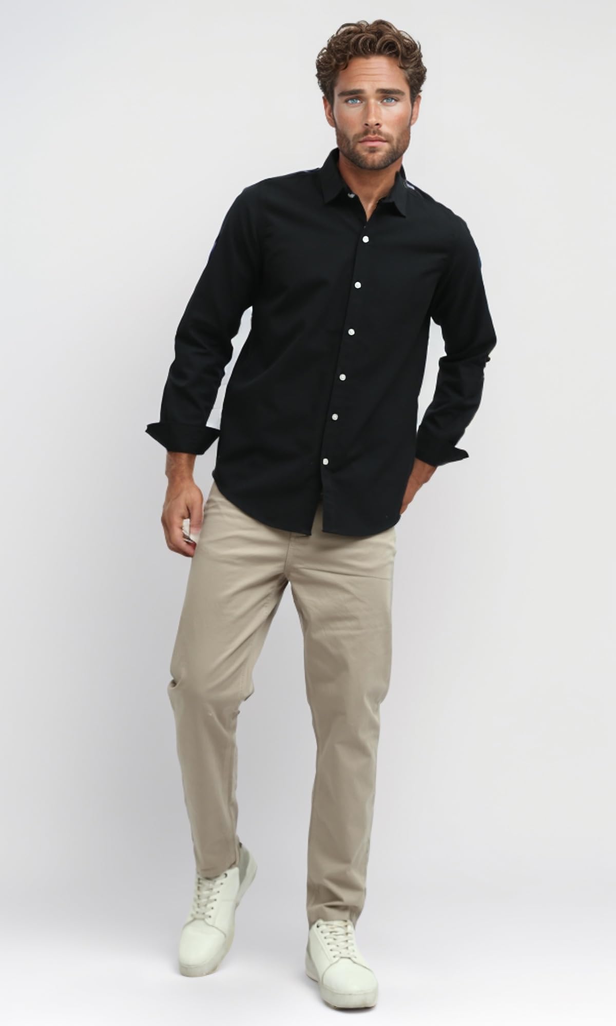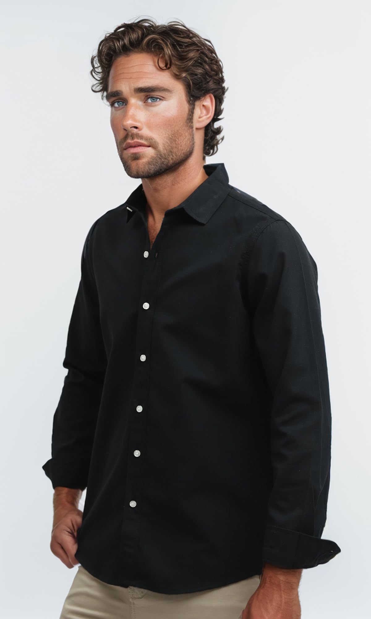 ريفين قميص كاجوال سادة باكمام طويلة وازرار بلون اسود للرجال
