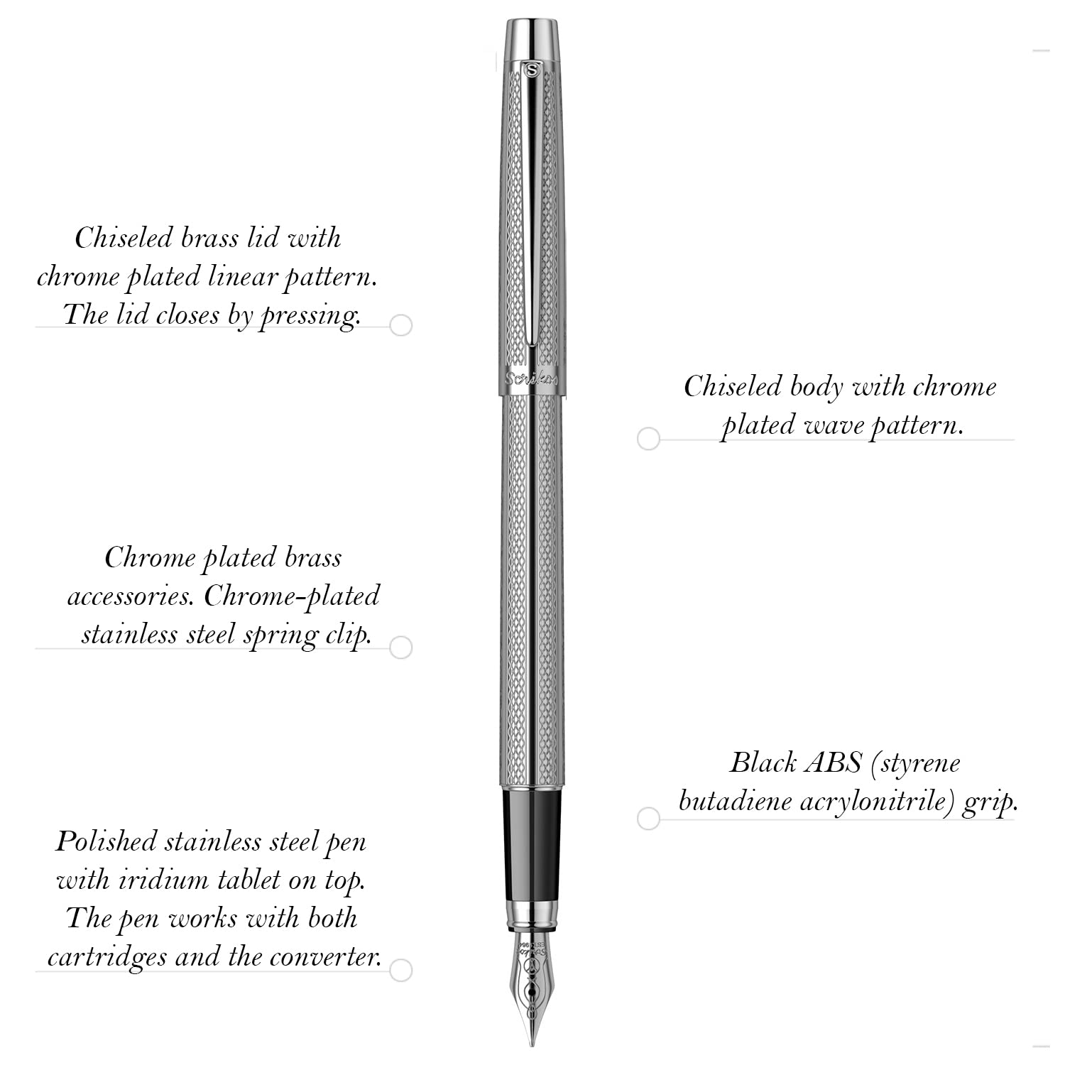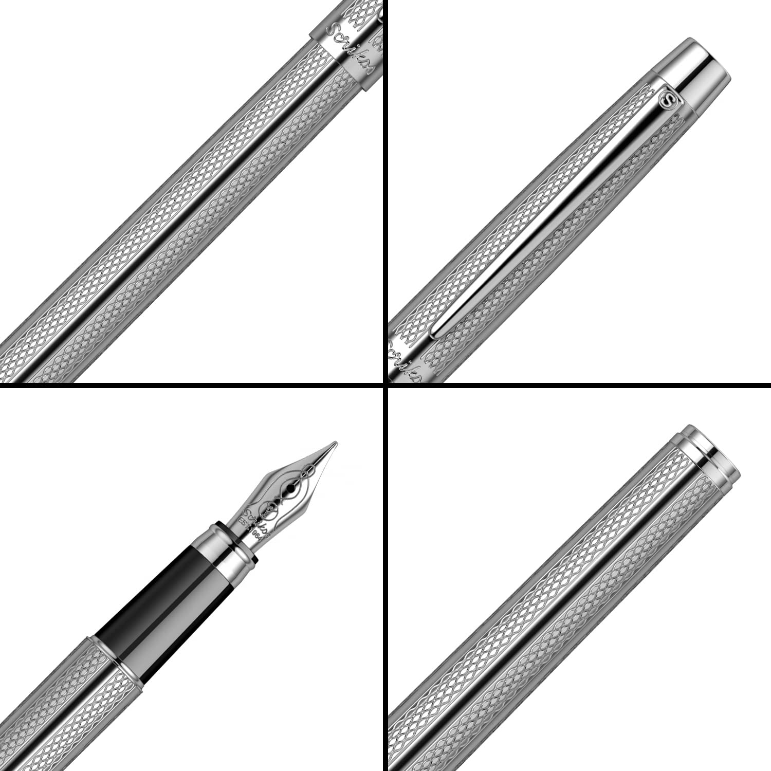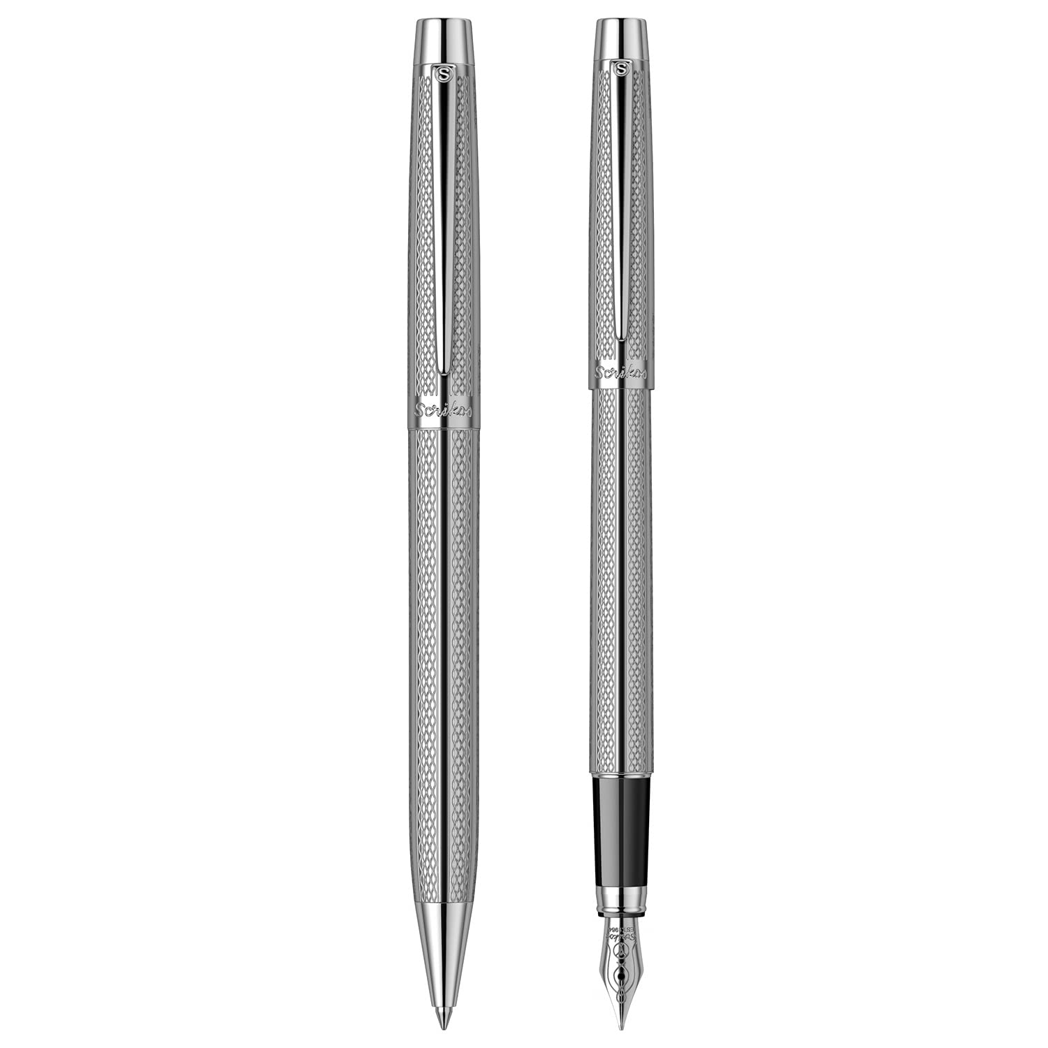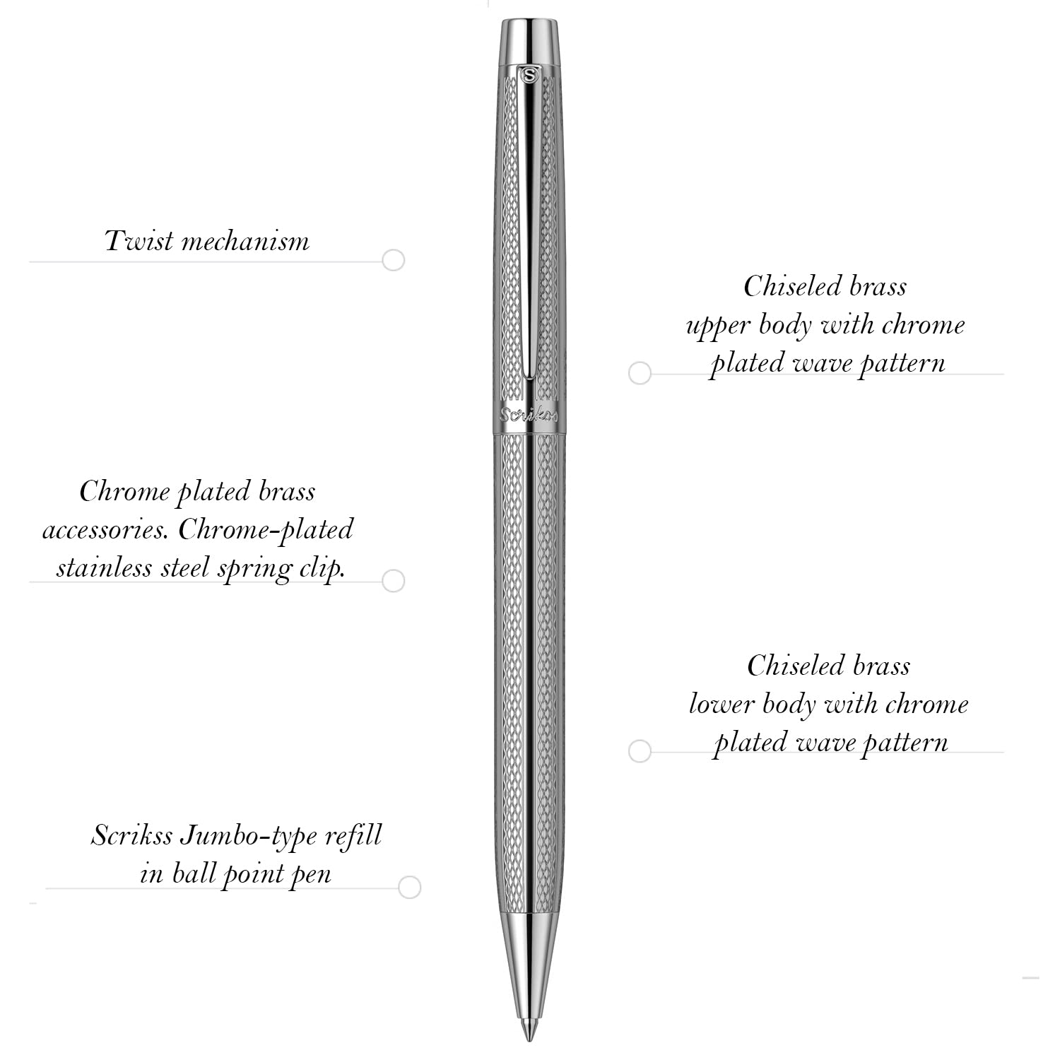 طقم أقلام سريكس إيليغانس فينوس 722 بلون الكروم مزيجاً رائعاً من الأناقة والأداء العالي. يتميز بتصميم معدني لامع من الكروم يمنحه مظهراً راقياً ومتيناً. يحتوي الطقم على قلم حبر فاخر برأس من الفولاذ المقاوم للصدأ لكتابة سلسة