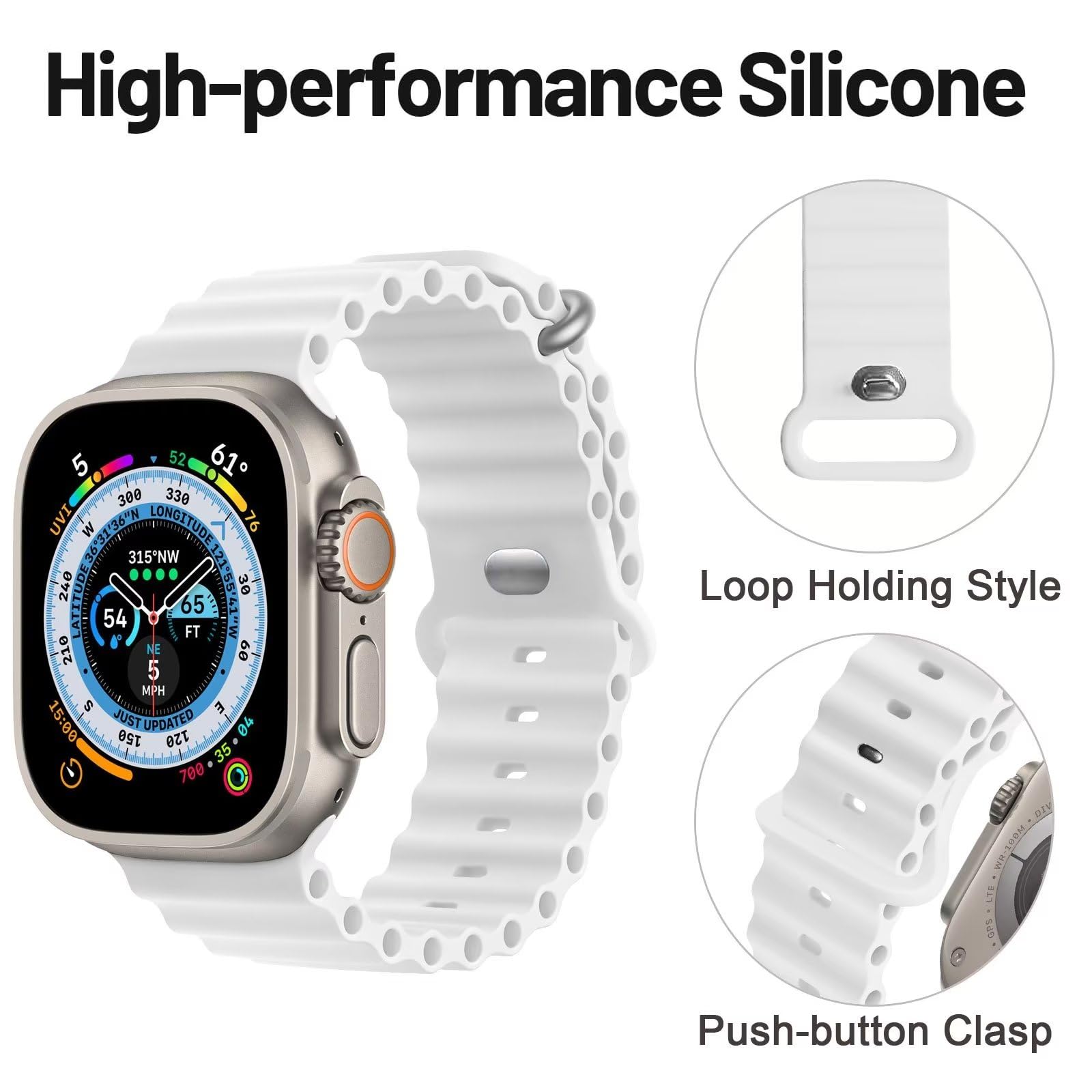 امنح ساعة Apple Watch Ultra الخاصة بك ترقية أنيقة مع هذا السوار السيليكوني المتين. صُمم ليوفر راحة ومرونة عالية مع ثبات مثالي للاستخدام اليومي، التمارين، والأنشطة الخارجية. مقاوم للعرق، خفيف الوزن، وأنيق — يجمع بين العملية والأناقة.