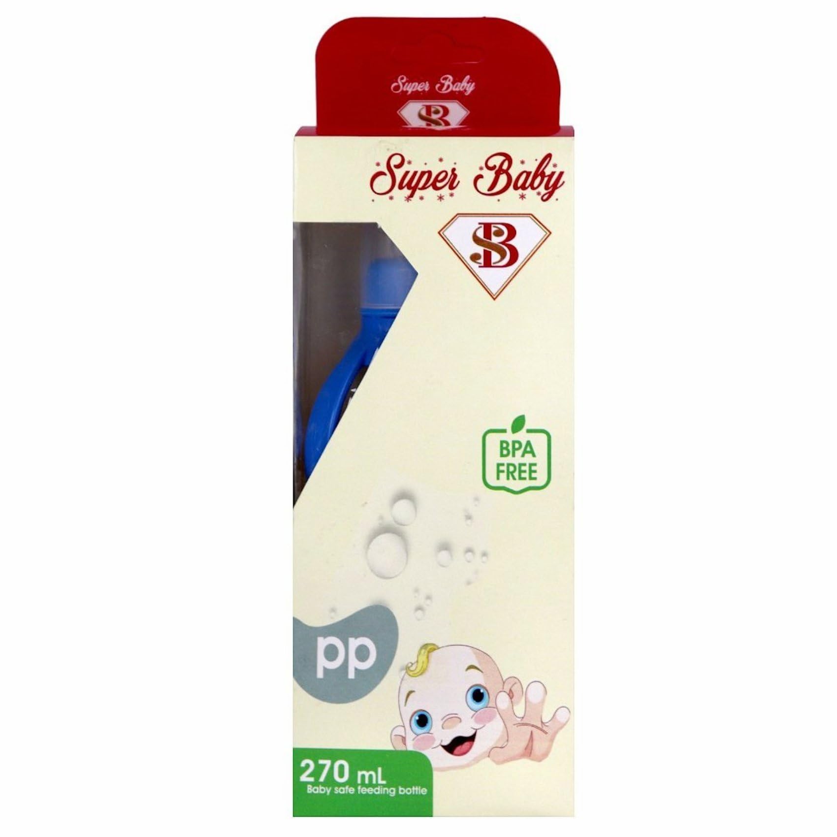 رضاعة سوبر بيبي 270 مل مصممة لتوفير تجربة رضاعة آمنة ومريحة لطفلك. مصنوعة من مواد خالية من مادة الـ BPA للحفاظ على صحة وسلامة الطفل في كل استخدام. تحتوي على مقابض مريحة تساعد الطفل على الإمساك بالرضاعة بسهولة والتدرب على الشرب بنفسه