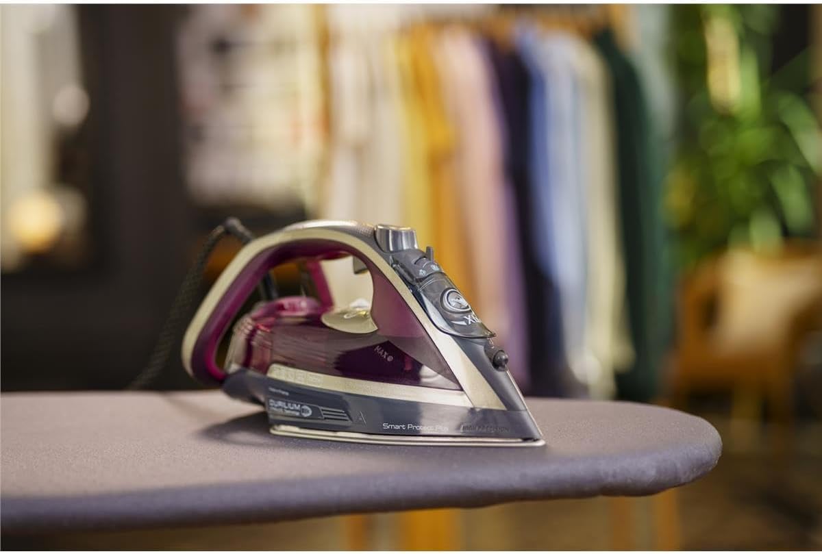 احصل على أداء كي قوي وآمن مع مكواة البخار تيفال سمارت بروتكت بلس FV6870. تعمل بقدرة 2800 واط لتسخين سريع وأداء بخار فعّال يمنح نتائج ممتازة على جميع أنواع الأقمشة دون الحاجة لضبط درجة الحرارة يدويًا.