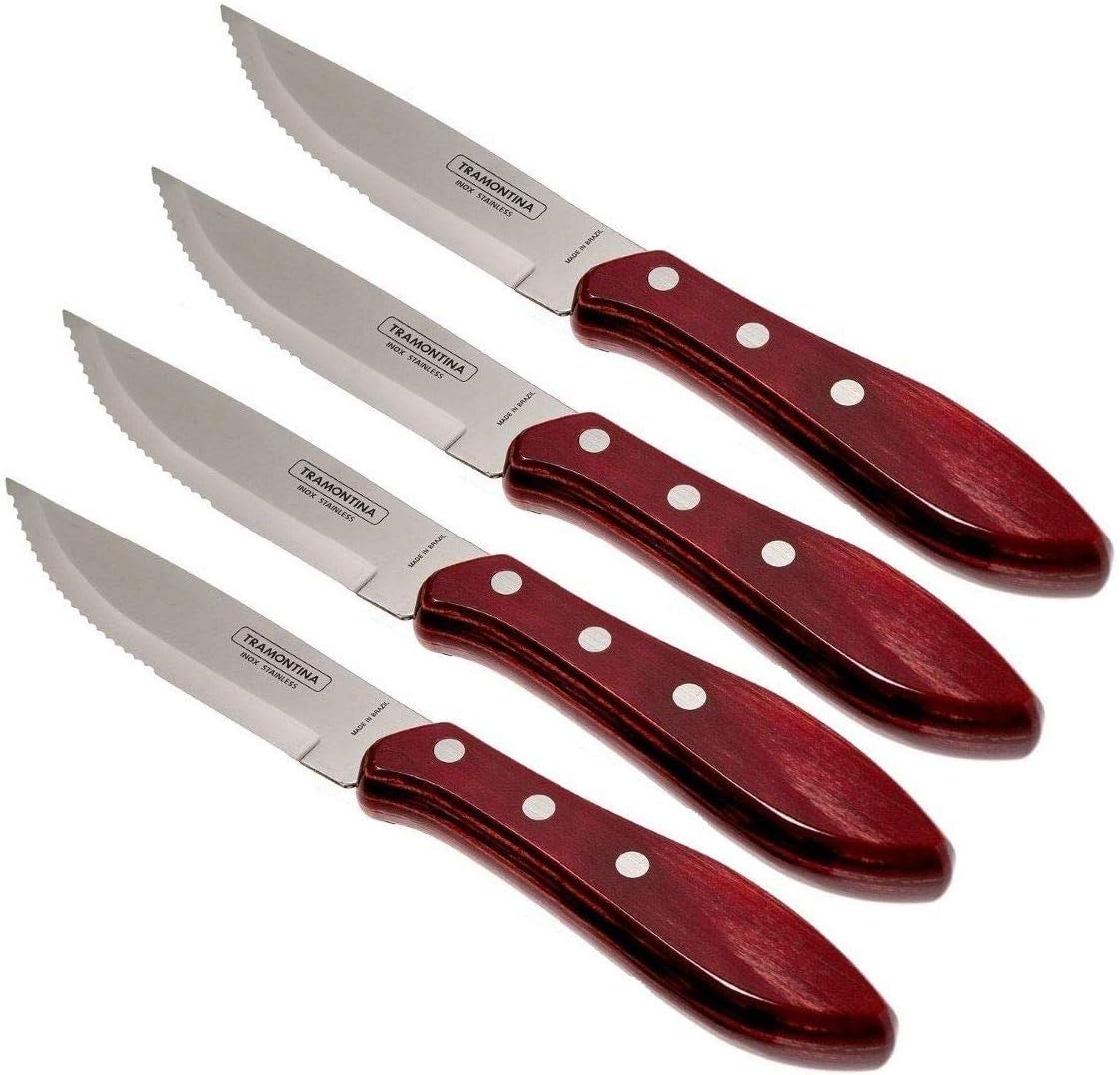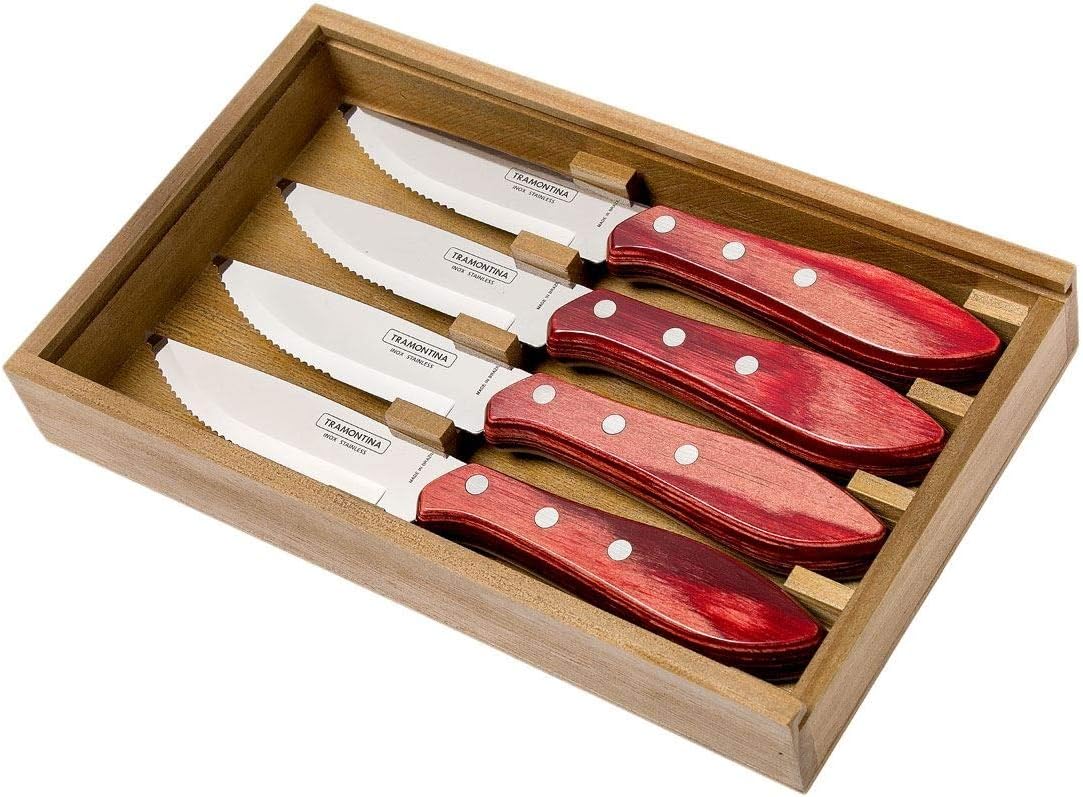 طقم سكاكين الستيك من Tramontina مثالي لتناول الستيك واللحوم الأخرى بسهولة ودقة. مصنوع من شفرات فولاذية عالية الجودة ومقابض مريحة، ليجمع بين الحدة والمتانة والراحة أثناء الاستخدام. مناسب للاستخدام اليومي أو للمناسبات الخاصة، ويضمن تجربة تقطيع احترافية على المائدة.