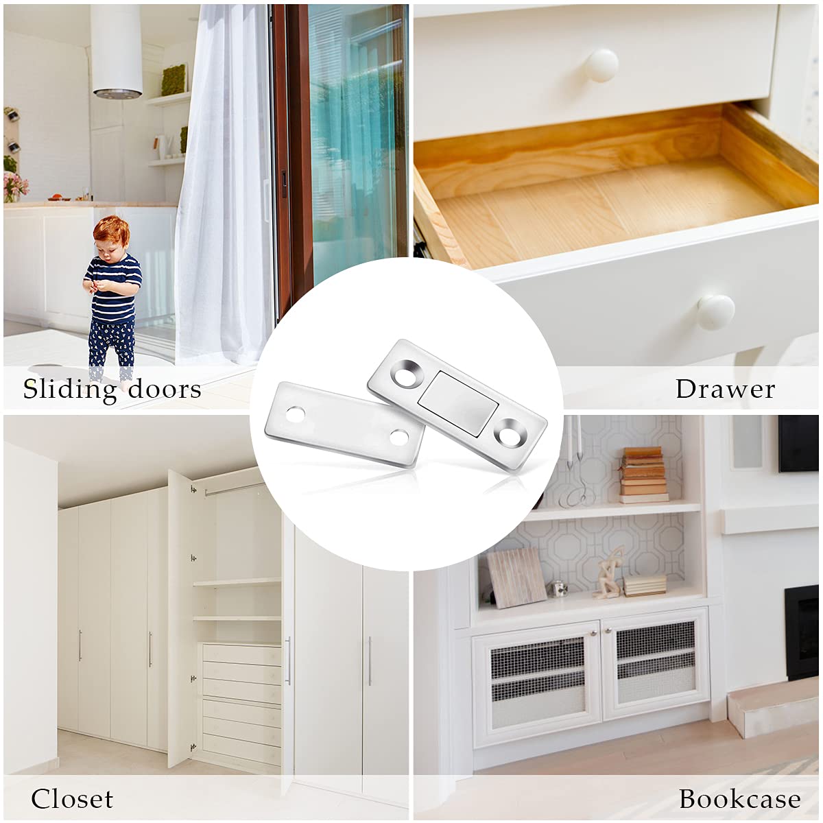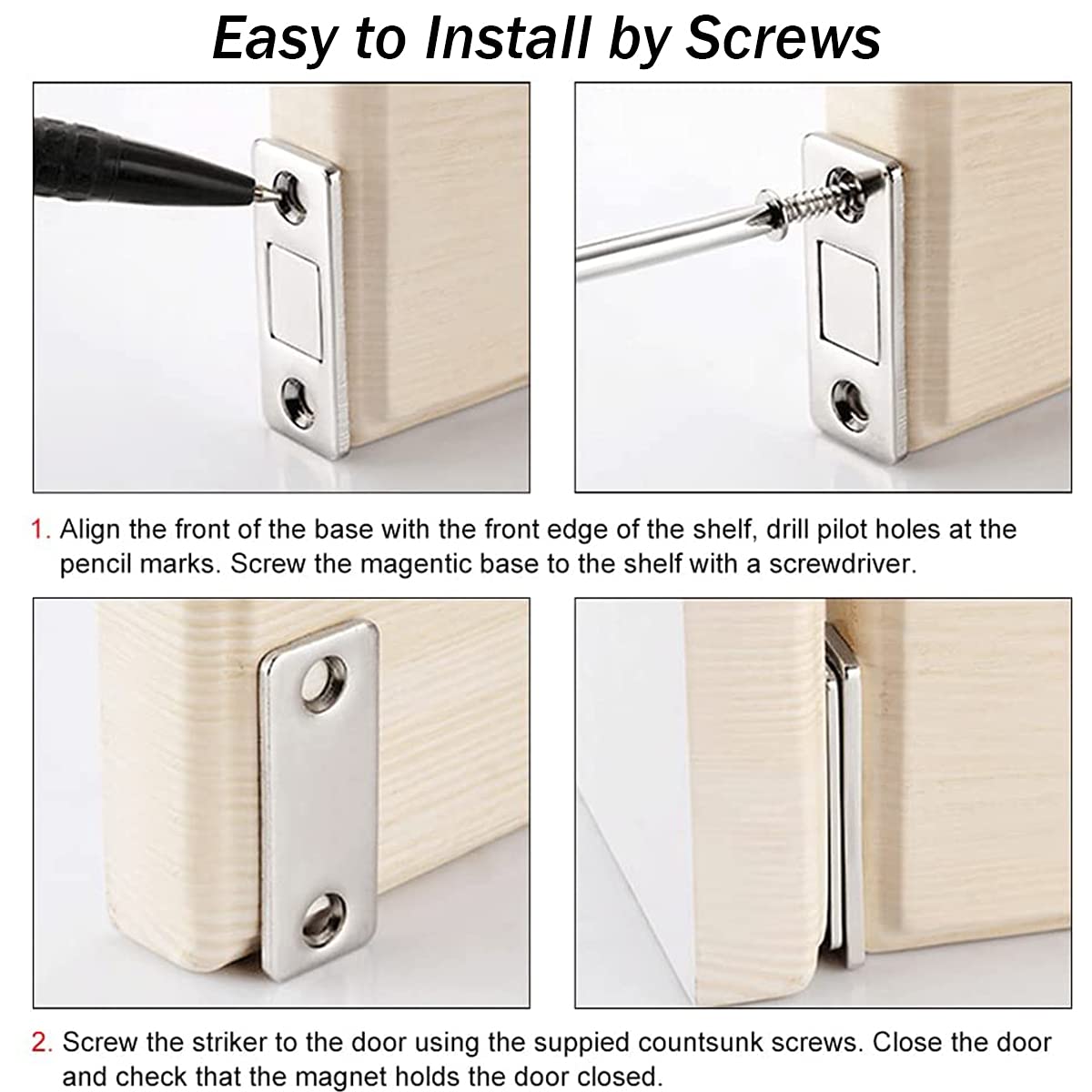 مغناطيس باب خزانة فائق النحافة مع براغي – مشابك مغناطيسية للأبواب والأدراج والنوافذ المنزلقة