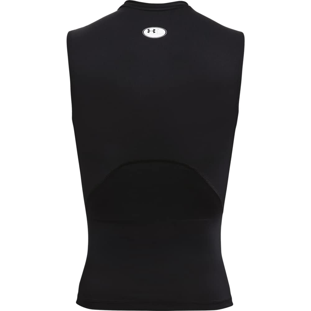 قميص الضغط الرجالي بدون أكمام من أندر آرمور باللون الأسود والمقاس الصغير جدًا. يتميز هذا القميص بخامة تمتص العرق وتجف بسرعة لتمنحك إحساسًا بالجفاف والانتعاش طوال فترة التمرين.