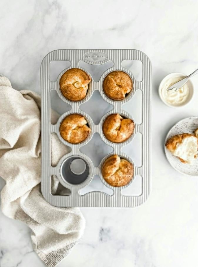 اخبز فطائر البوب أوفر الخفيفة والهشة والمُنتفخة بشكل مثالي مع صينية البوب أوفر من USA Pan – صينية احترافية مصممة لتساعدك في تحضير هذه الحلوى الكلاسيكية بسهولة في المنزل. تحتوي على 6 تجويفات عميقة موزعة بمسافات مثالية لزيادة تدفق الهواء، مما يضمن فطائر عالية، مقرمشة، وذهبية اللون في كل مرة.