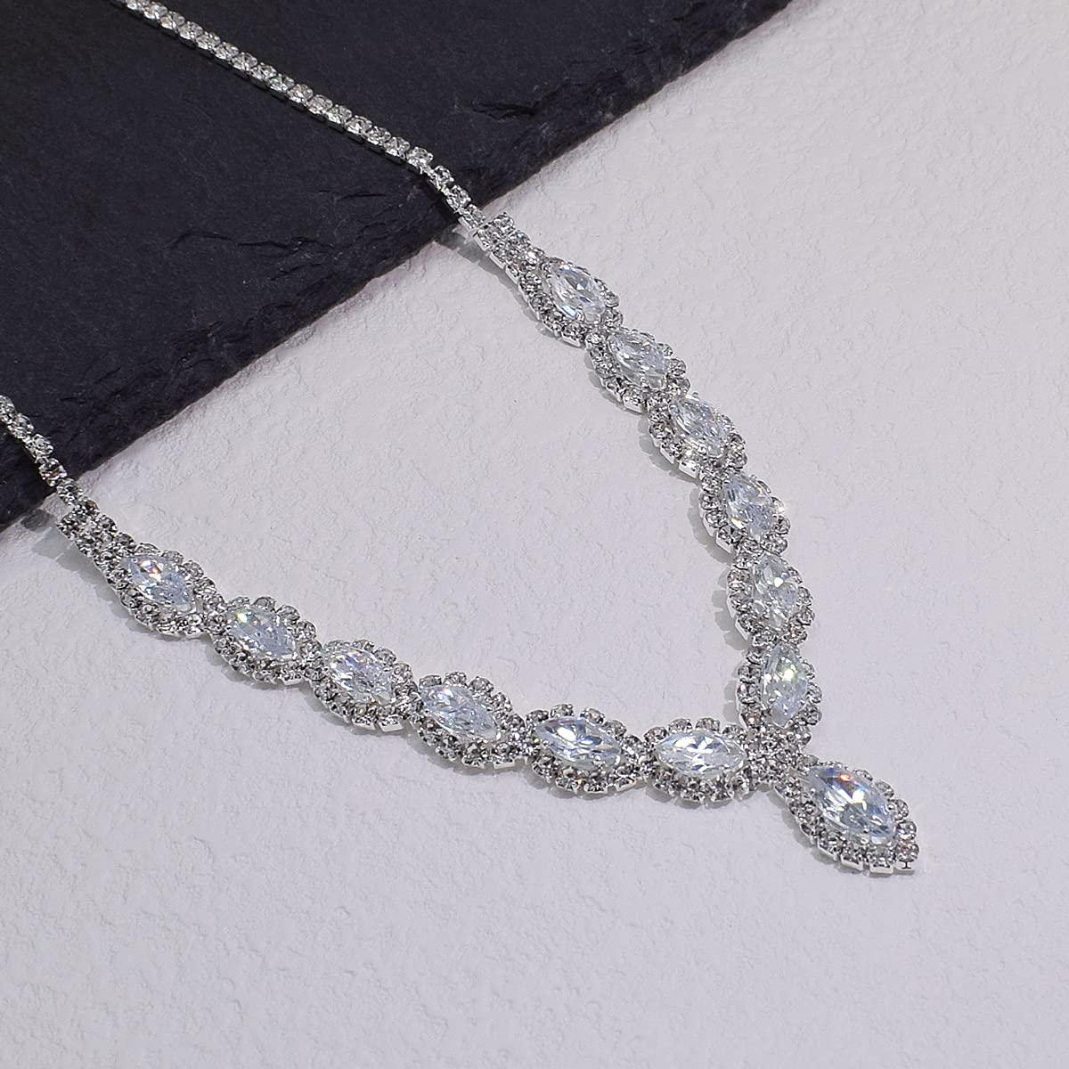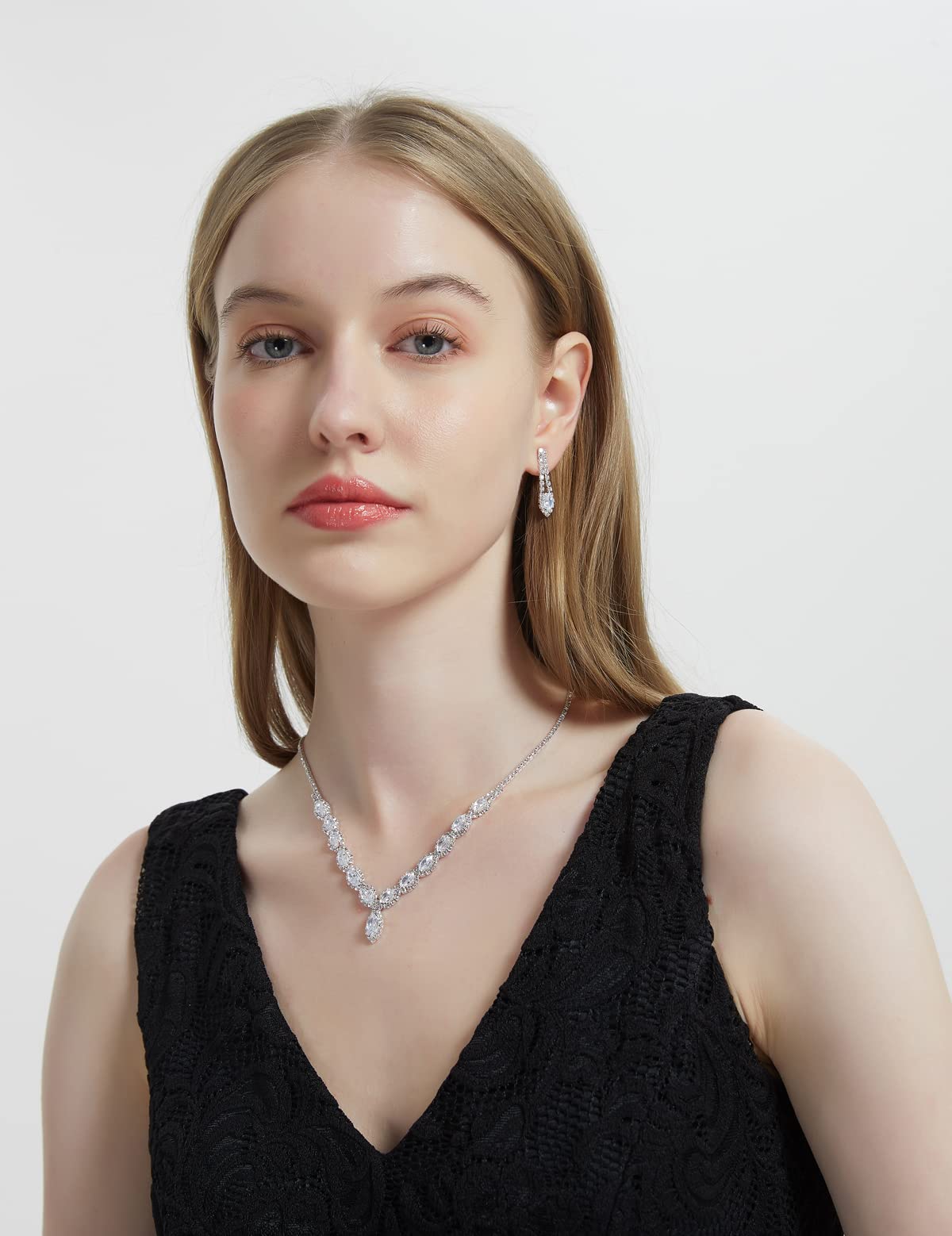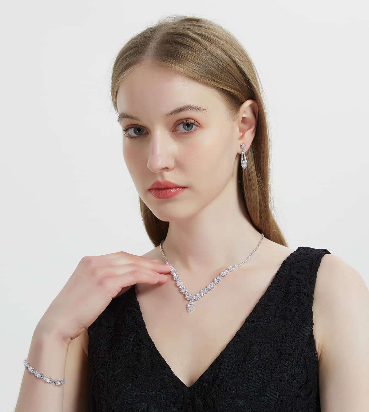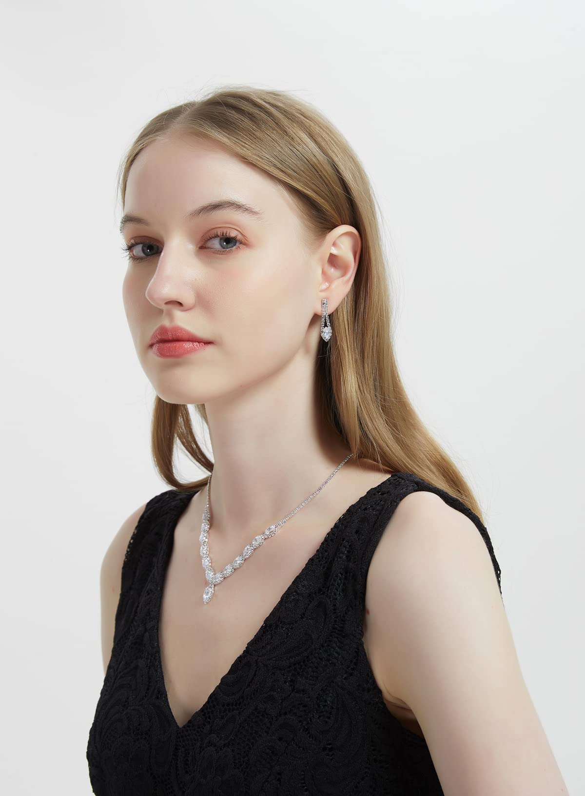 طقم مجوهرات نسائي من واي سول – عقد وأقراط مرصعة بفصوص CZ لليالي السهرة والزفاف